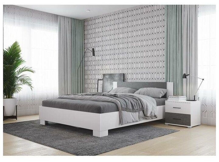 10 цен на Кровать Nova, 1634×2058×785 мм, спальное место 1600×2000 мм, белый/ бетон