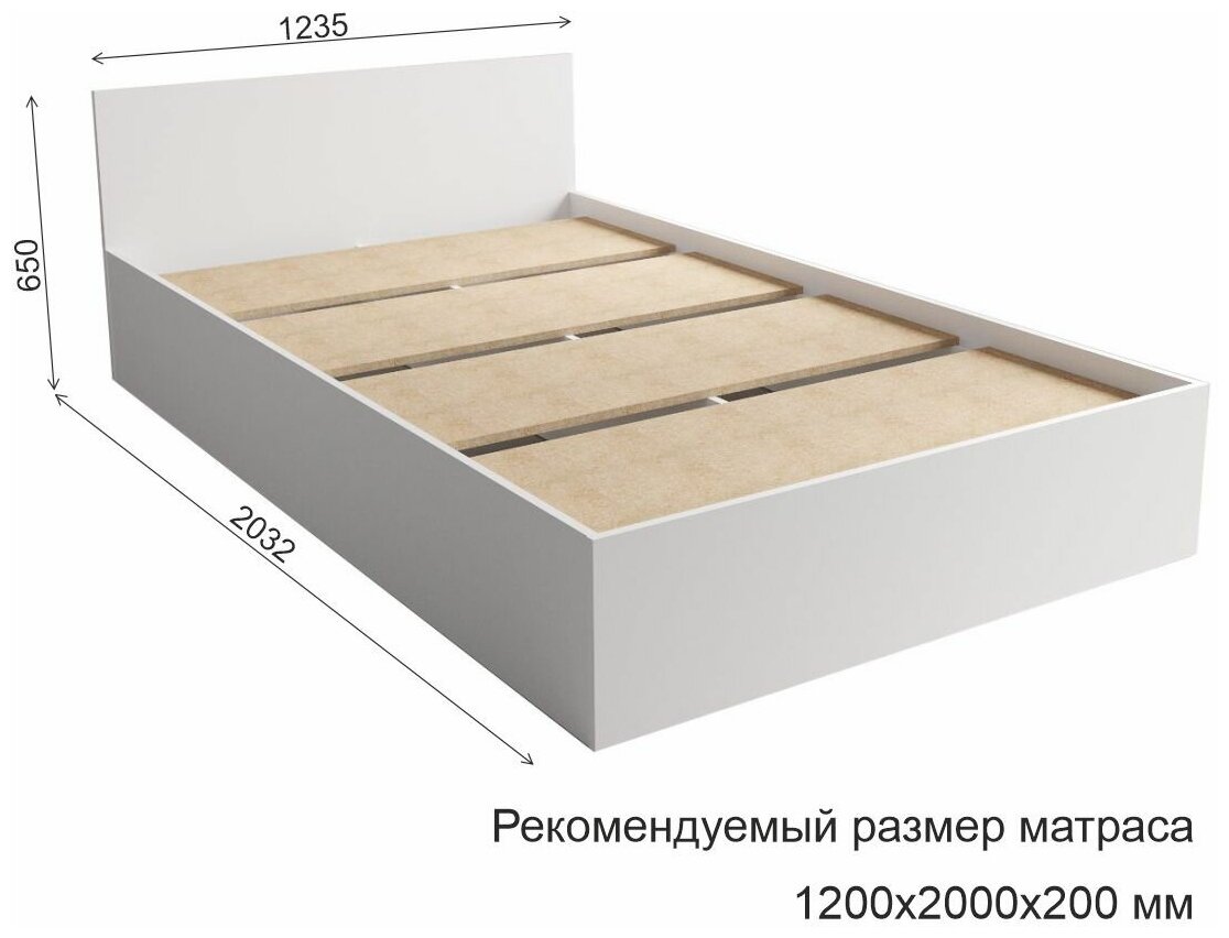 Кровать ДСВ Мебель Мори КРМ 1200.1/1 (МП/3) Белый Размеры: Высота 650мм Глубина 2032мм Ширина 1235мм
