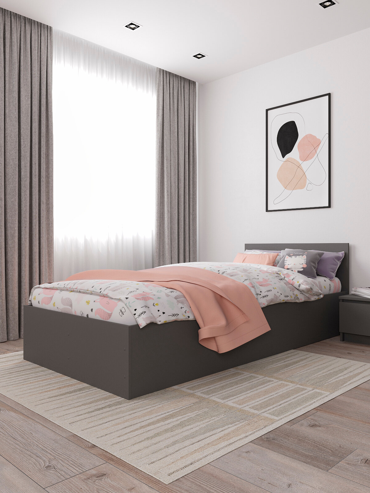 Кровать ДСВ "Мори" КРМ 900.1, ЛДСП, графит, односпальная, 90х200х65 см информация: