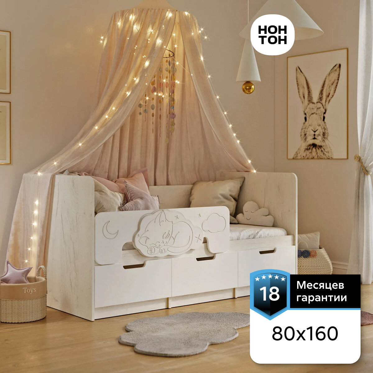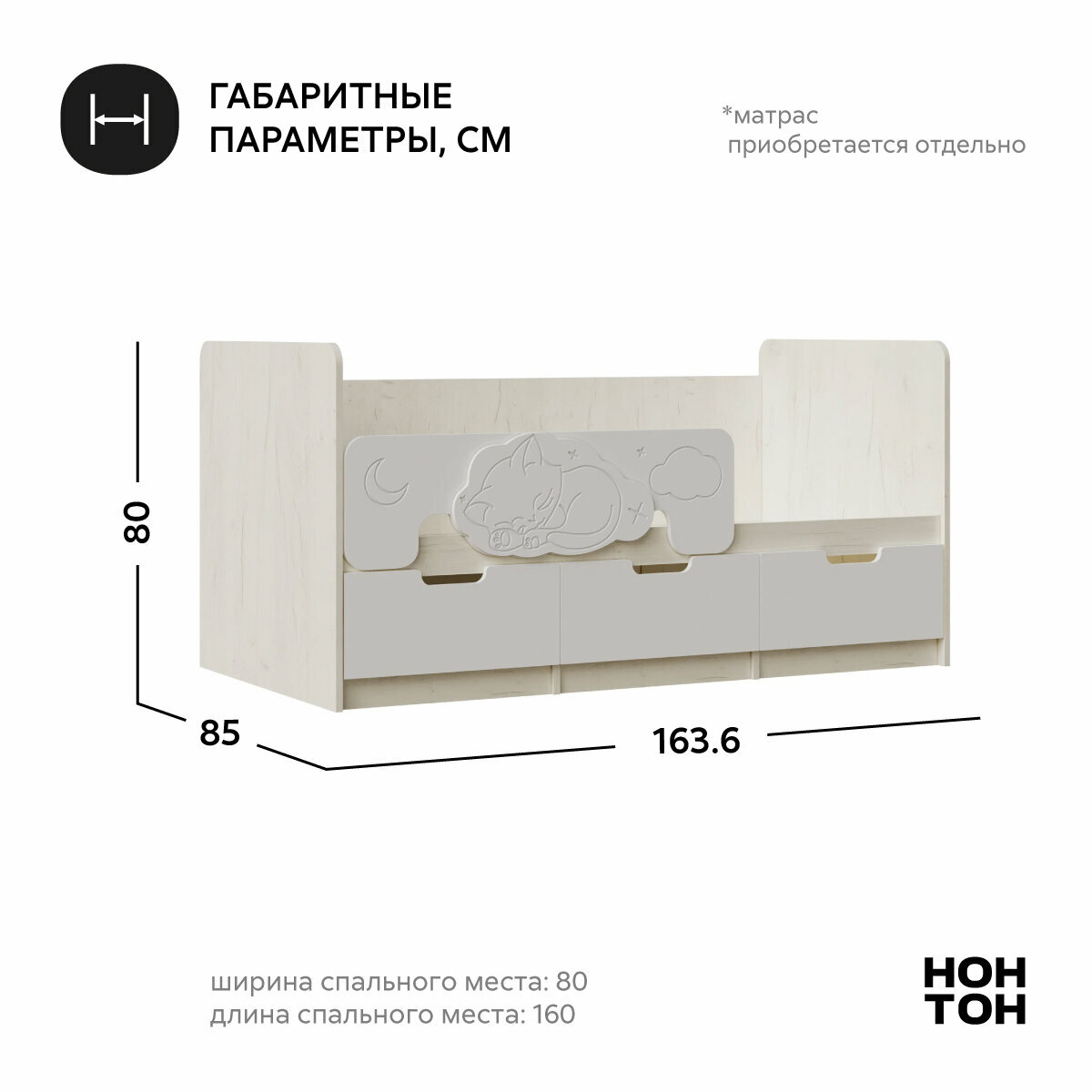Отзывы на Кровать детская с бортиком Нонтон Юниор-4, 80*160 см, дуб крафт белый / шарли белый