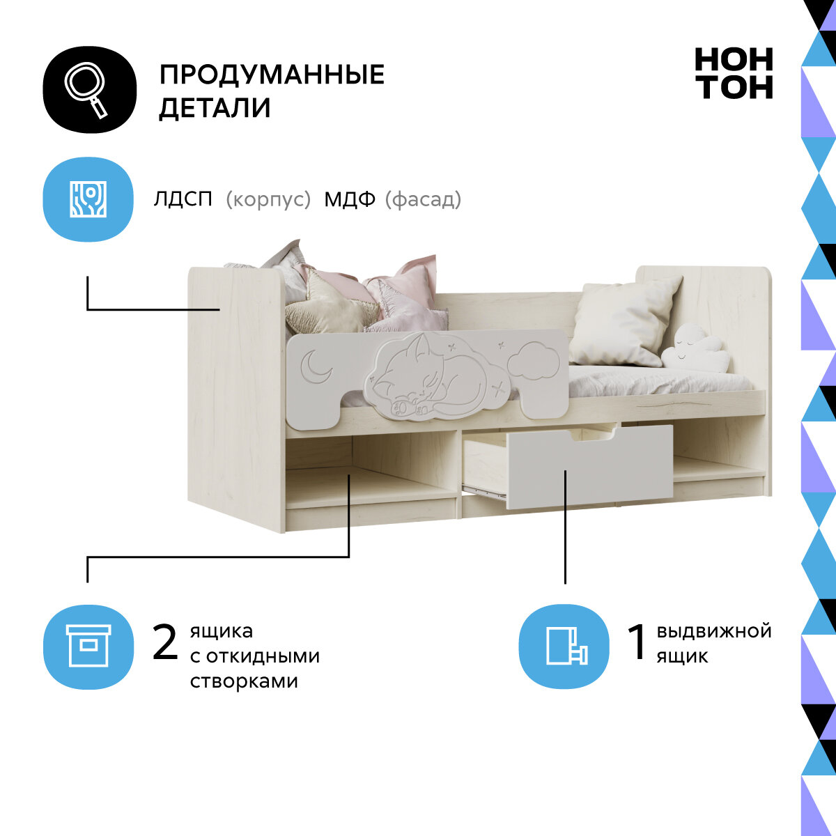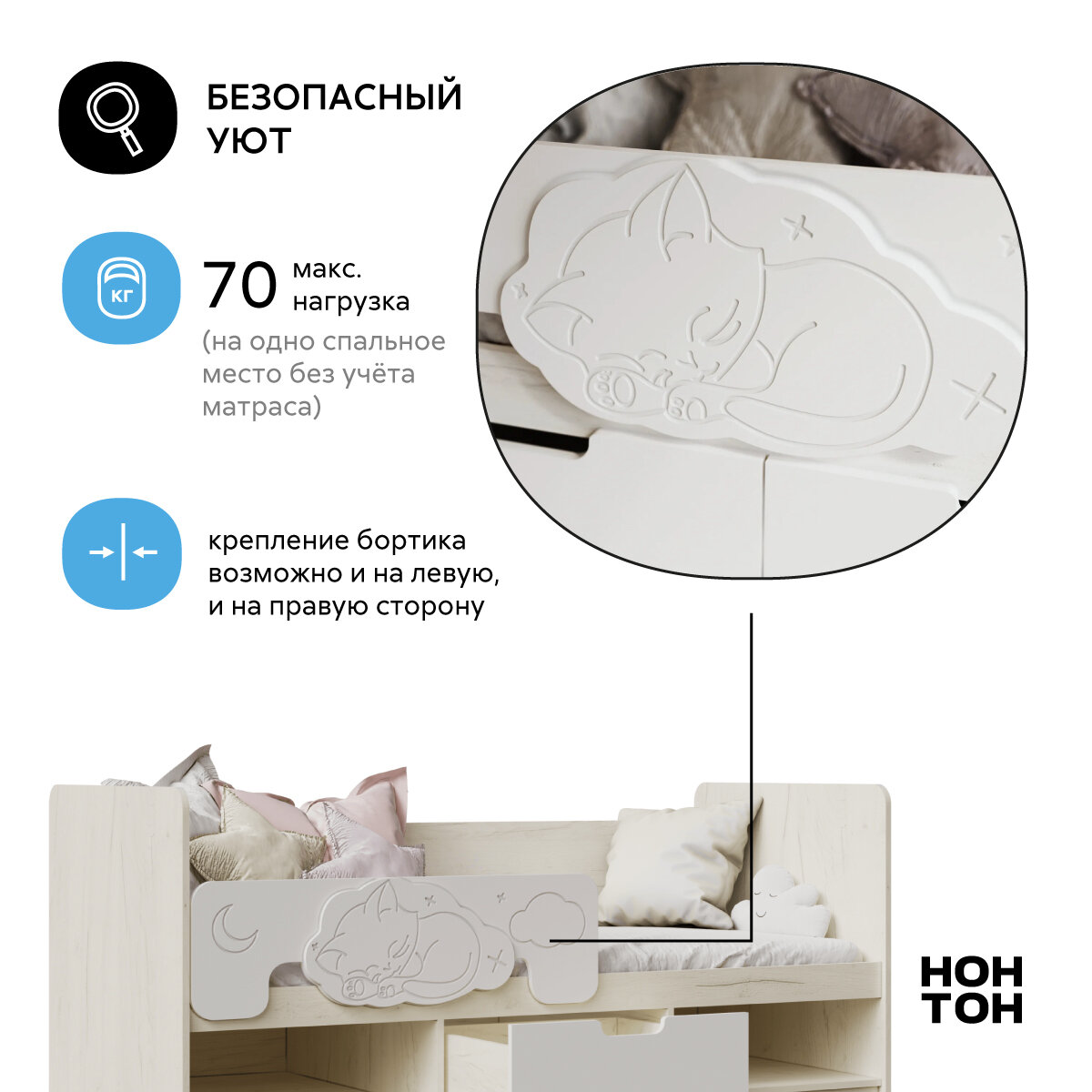 | Особенности | для детей, с бортиком, с ящиком для белья |