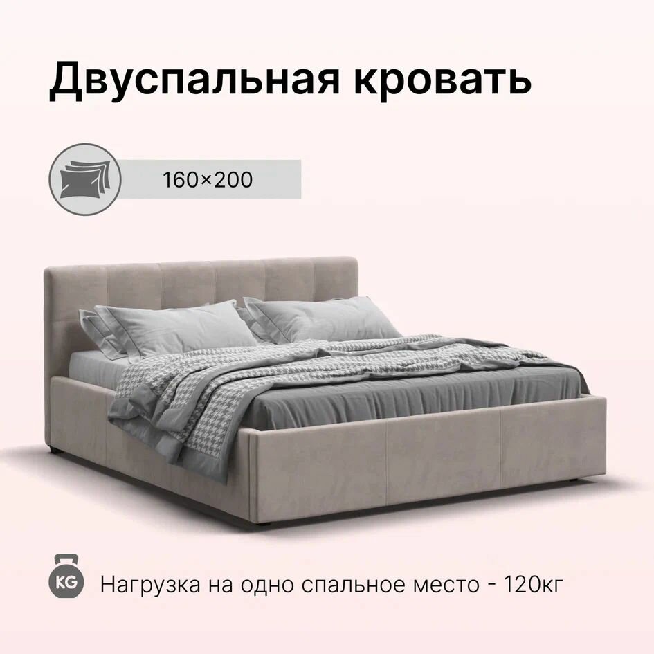 Двуспальная кровать Белла, с подъемным механизмом, велюр Monolit латте, 160х200 см, Много Мебели информация: