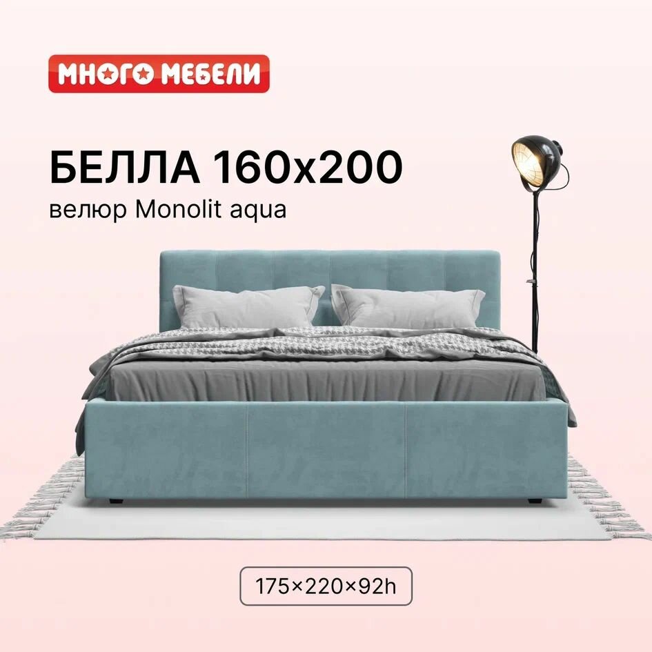 Отзывы на Двуспальная кровать Белла, с подъемным механизмом, велюр Monolit аква, 160х200 см, Много Мебели