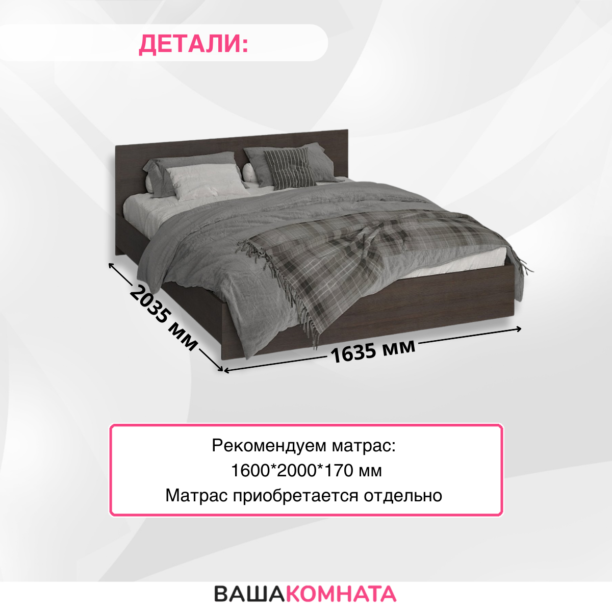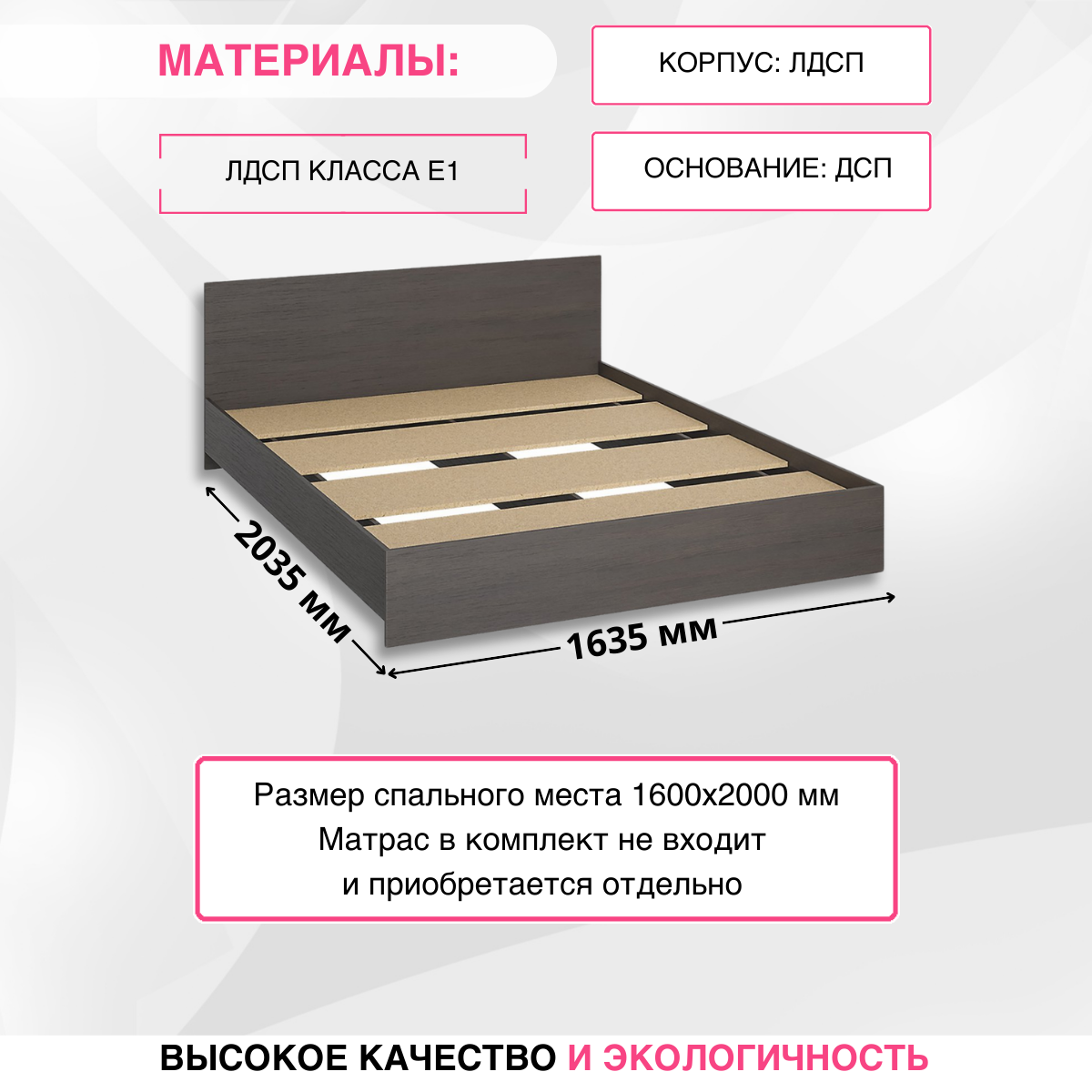 Двуспальная кровать 160х200 "ронда", 160x200 см , цвет венге, для спальни информация: