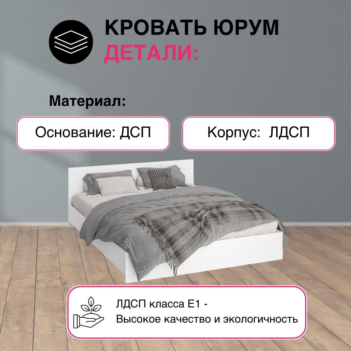 Отзывы на Двуспальная кровать 160х200 двуспальная "Юрум", 160x200 см , цвет белое дерево, для спальни