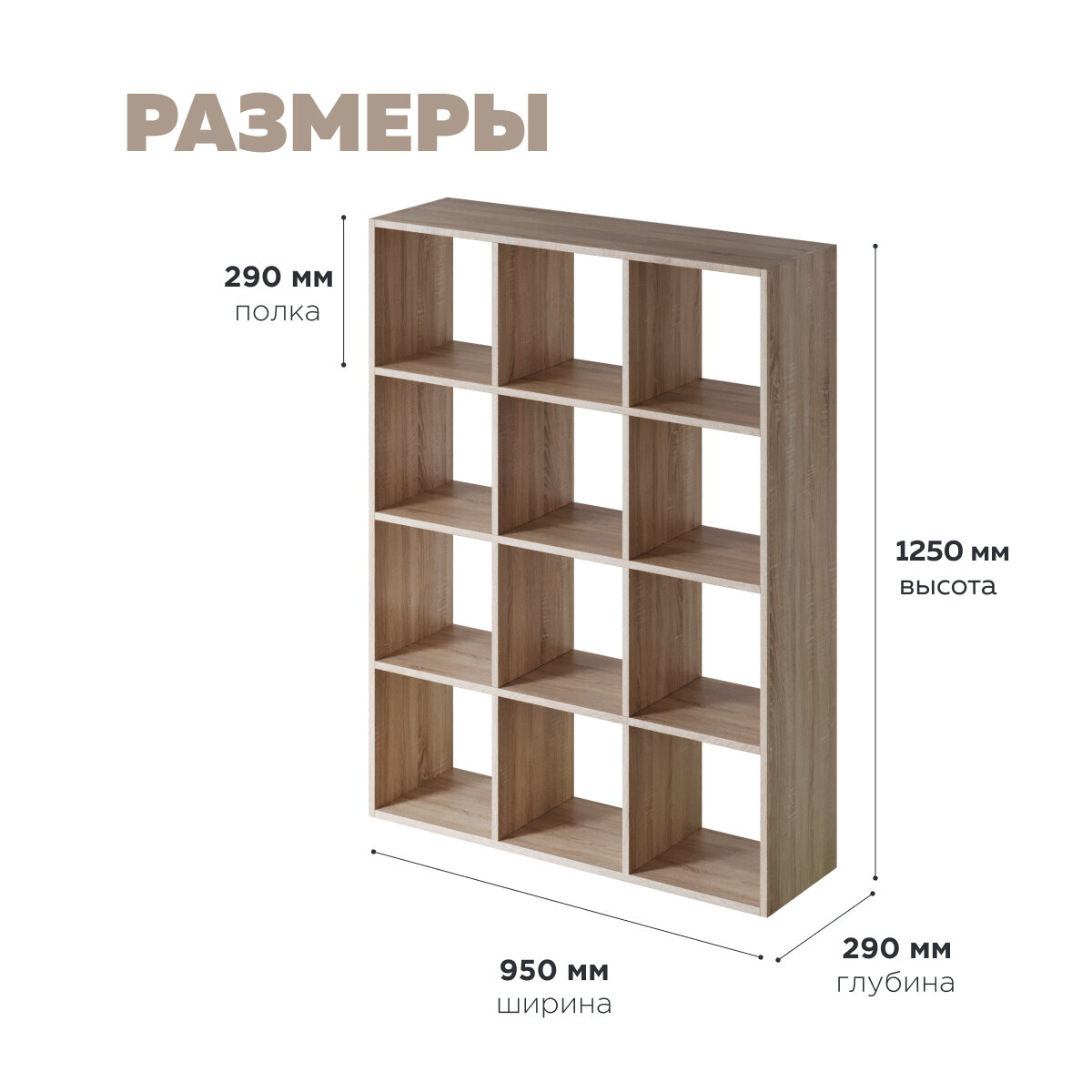 Отзывы на Стеллаж деревянный напольный ЛДСП; 125см x 95см x 29см; 12 ячеек; цвет дуб