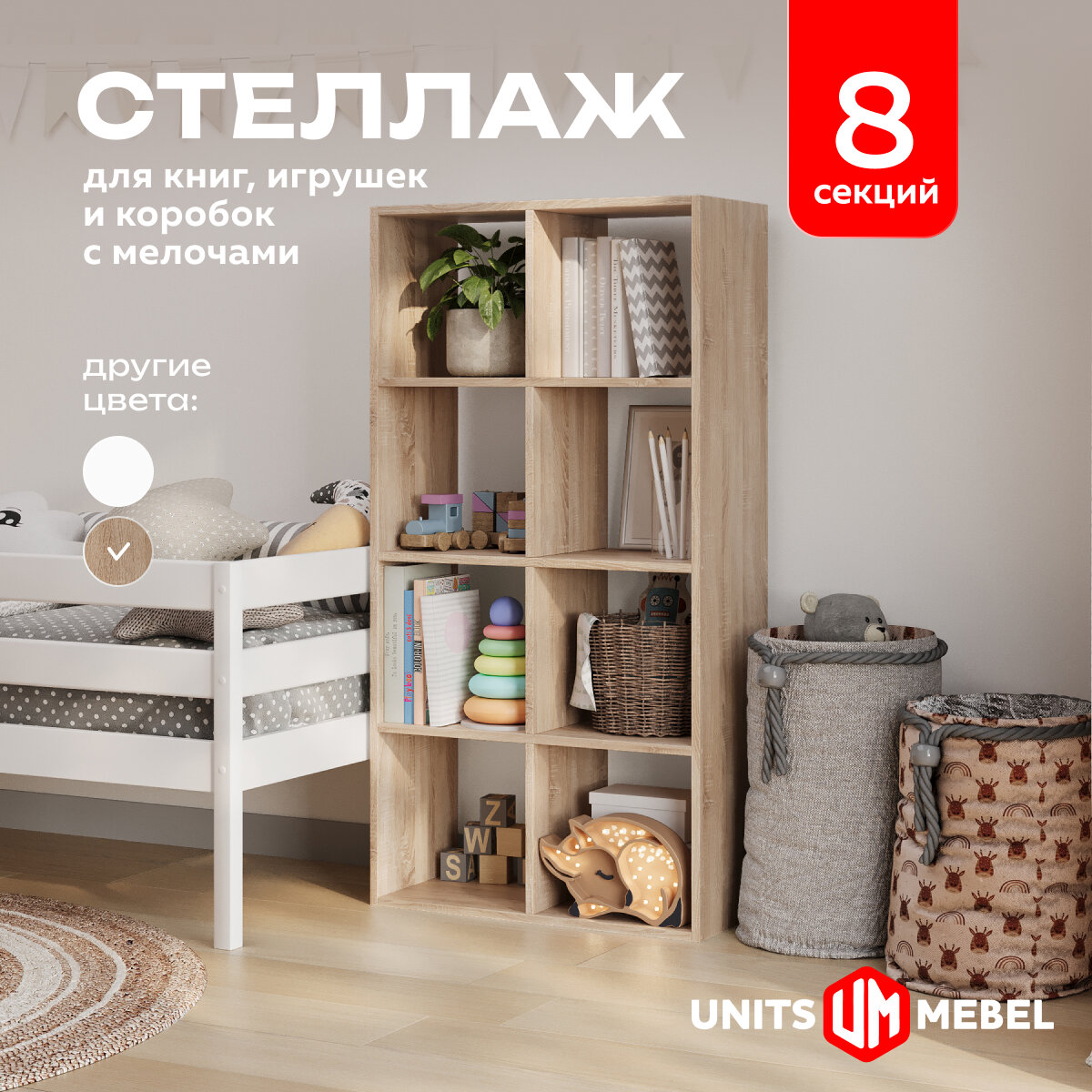 Отзывы на Стеллаж деревянный напольный ЛДСП; 125см x 95см x 29см; 8 ячеек; цвет дуб