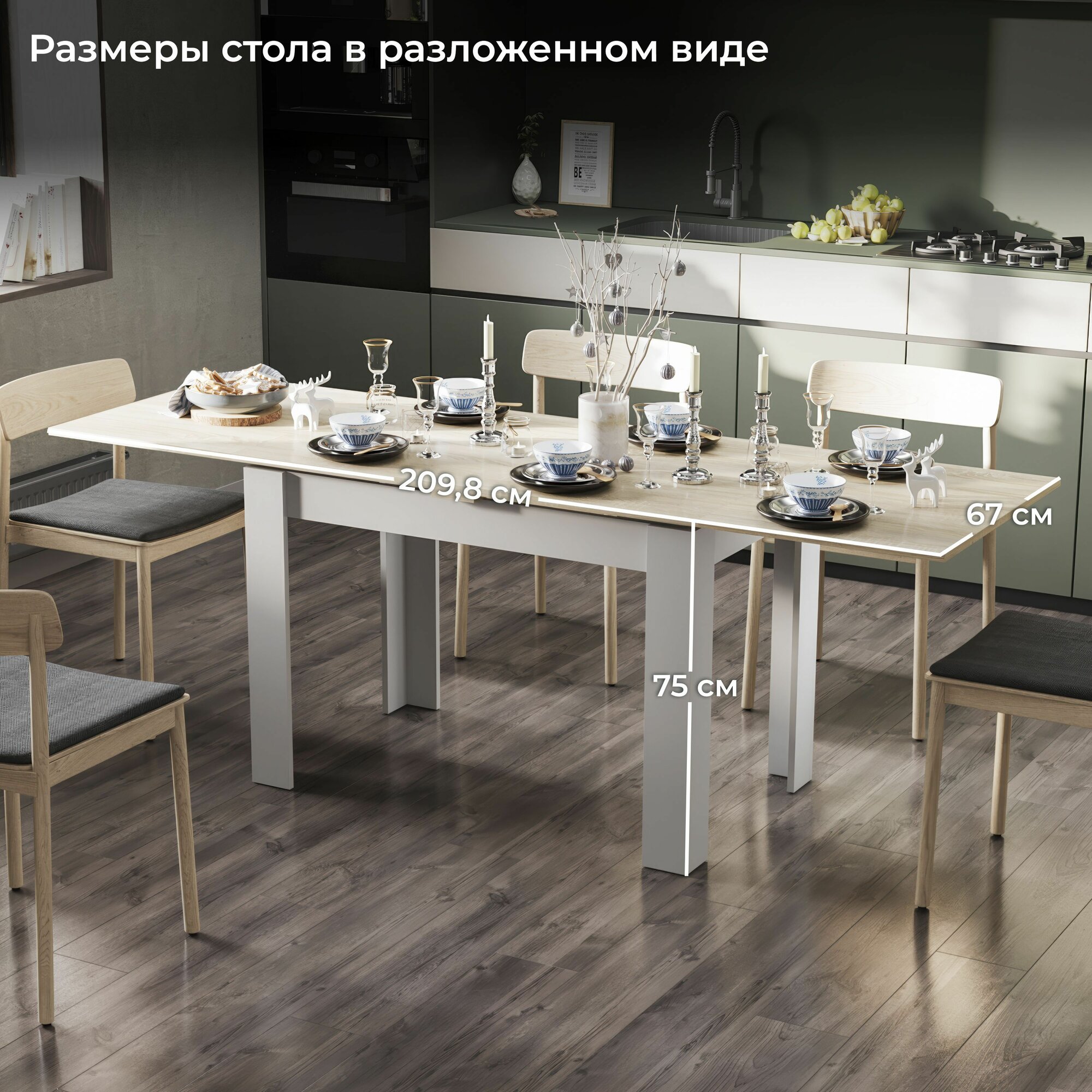 Стол кухонный раздвижной, стол обеденный белый бежевый дуб (ВхДхГ) 75х110х67 см, Промо Тип 4