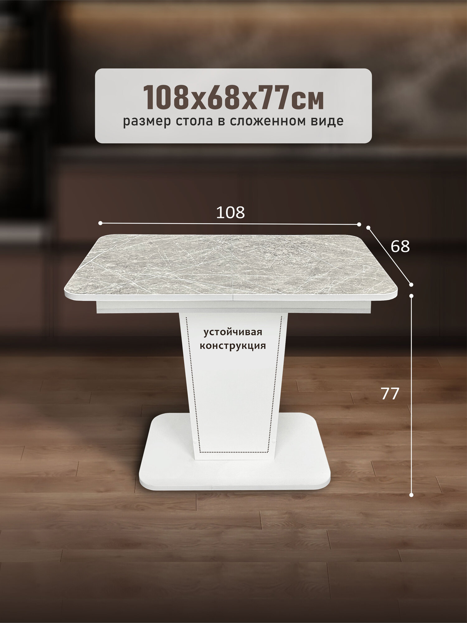 Стол обеденный Астола "Грант", раскладной, ЛДСП, белый мрамор, 108х68х77 см 12 200 ₽