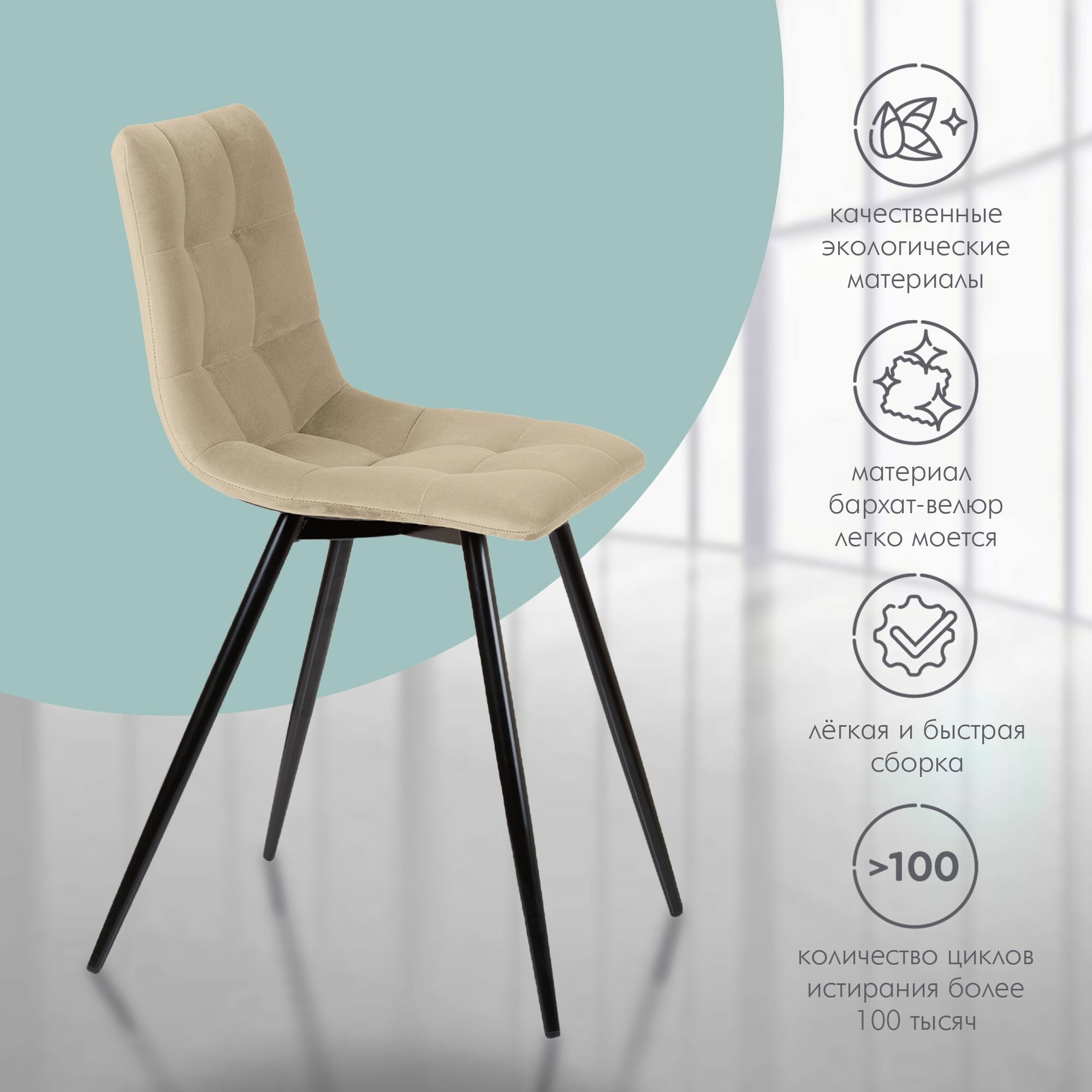 Комплект стульев для кухни Nordix Pixel, мягкий велюр, бежевый 4 шт 14 590 ₽