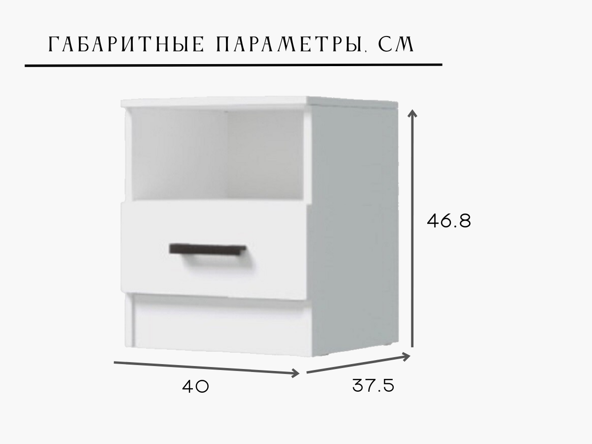 Тумба прикроватная с ящиком и полкой Эра Эко 40х37,5х46,8 см, Белый гладкий информация: