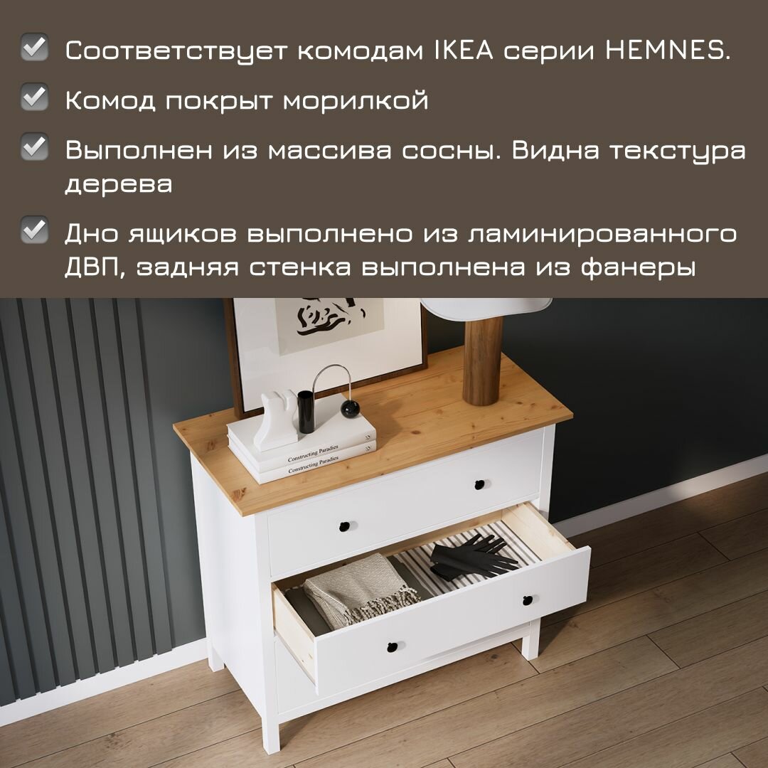 Отзывы на Комод с ящиками для одежды белый/светло-коричневый, Кымор (Hemnes Ikea), 3 ящика, 108х50х96 см