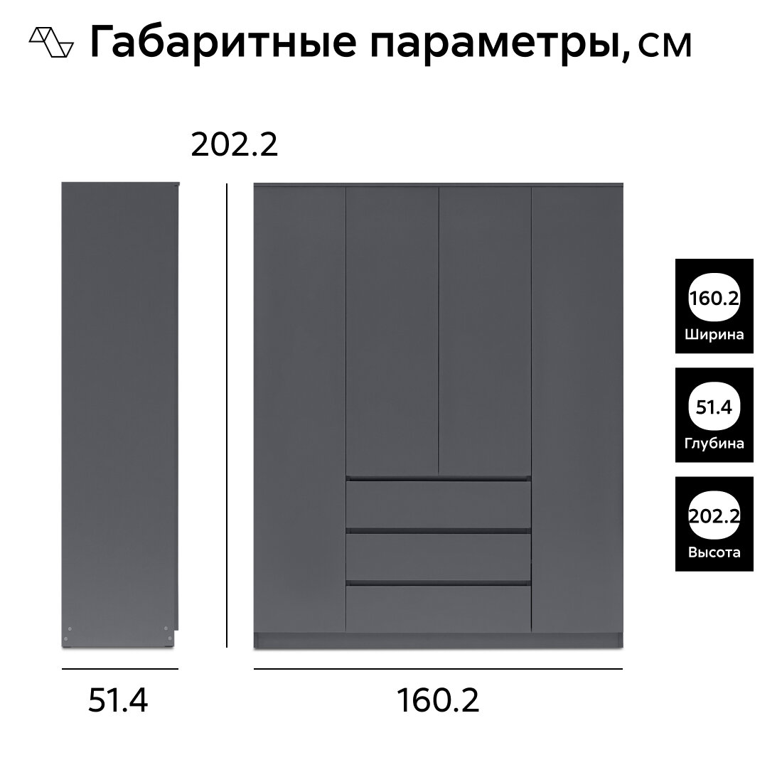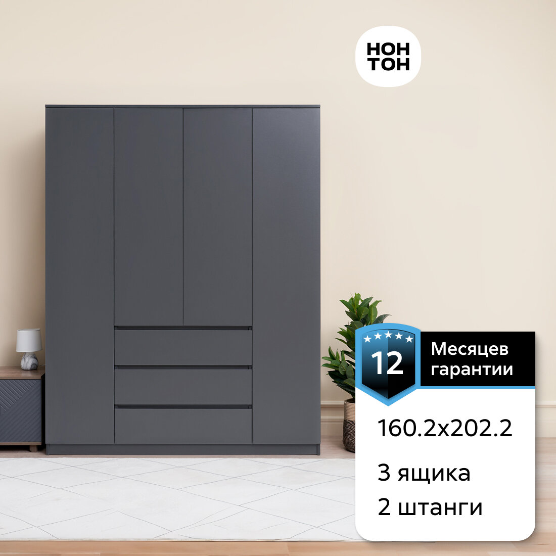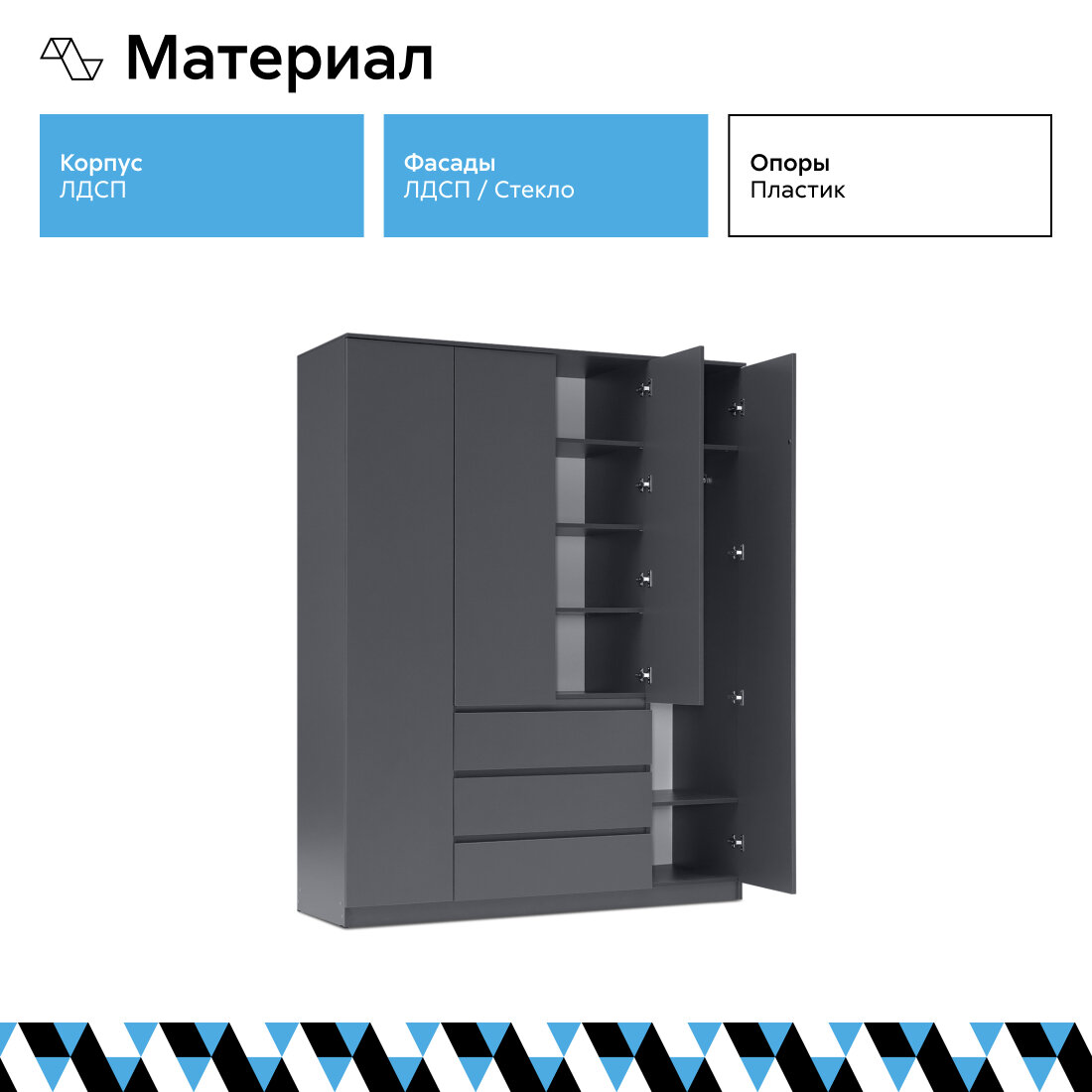Шкаф 4-х дверный Миф Челси, 3 ящика, графит 160.2х51.4х202.2 см 15 693 ₽