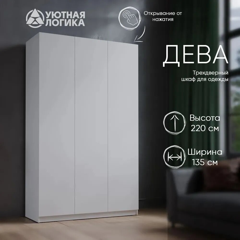10 цен на Шкаф распашной для одежды трехдверный Дева ШК-011 220*135*50 Белый