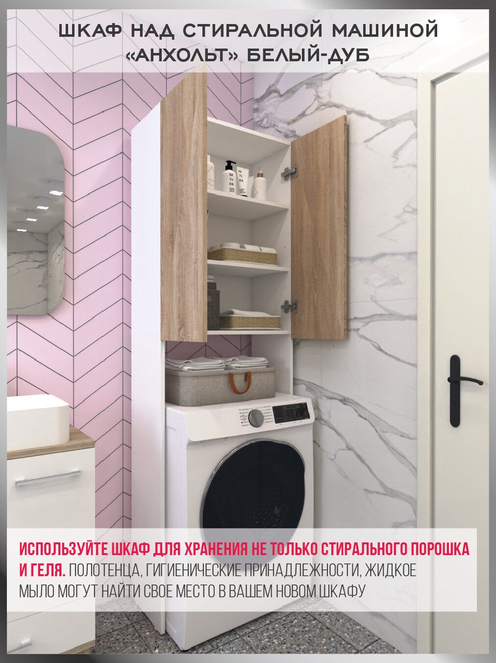 Шкаф Milkstone Анхольт, над стиральной машиной, напольный, ЛДСП, 64 см x 198 см 5 672 ₽