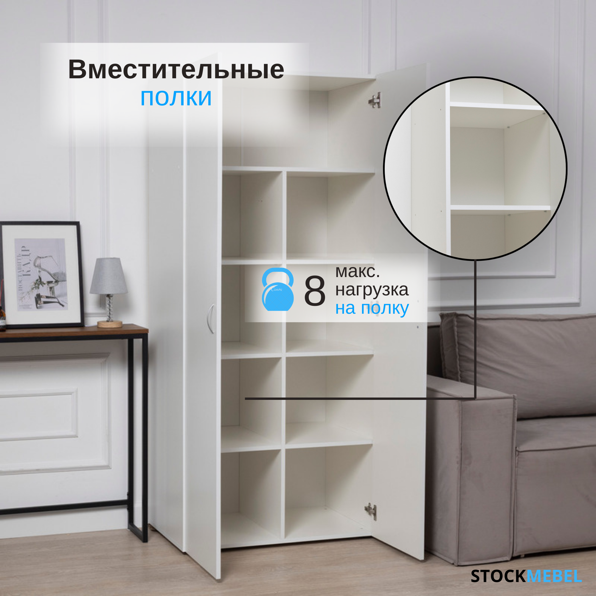Отзывы на Шкаф распашной универсальный с полками для хранения вещей Белый 81х53х186