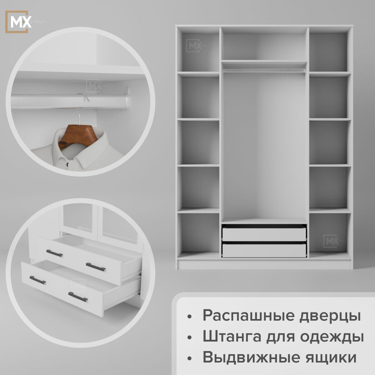 Шкаф для одежды с зеркалом и ящиками Нонтон Квадро, белый, 160 см 19 990 ₽