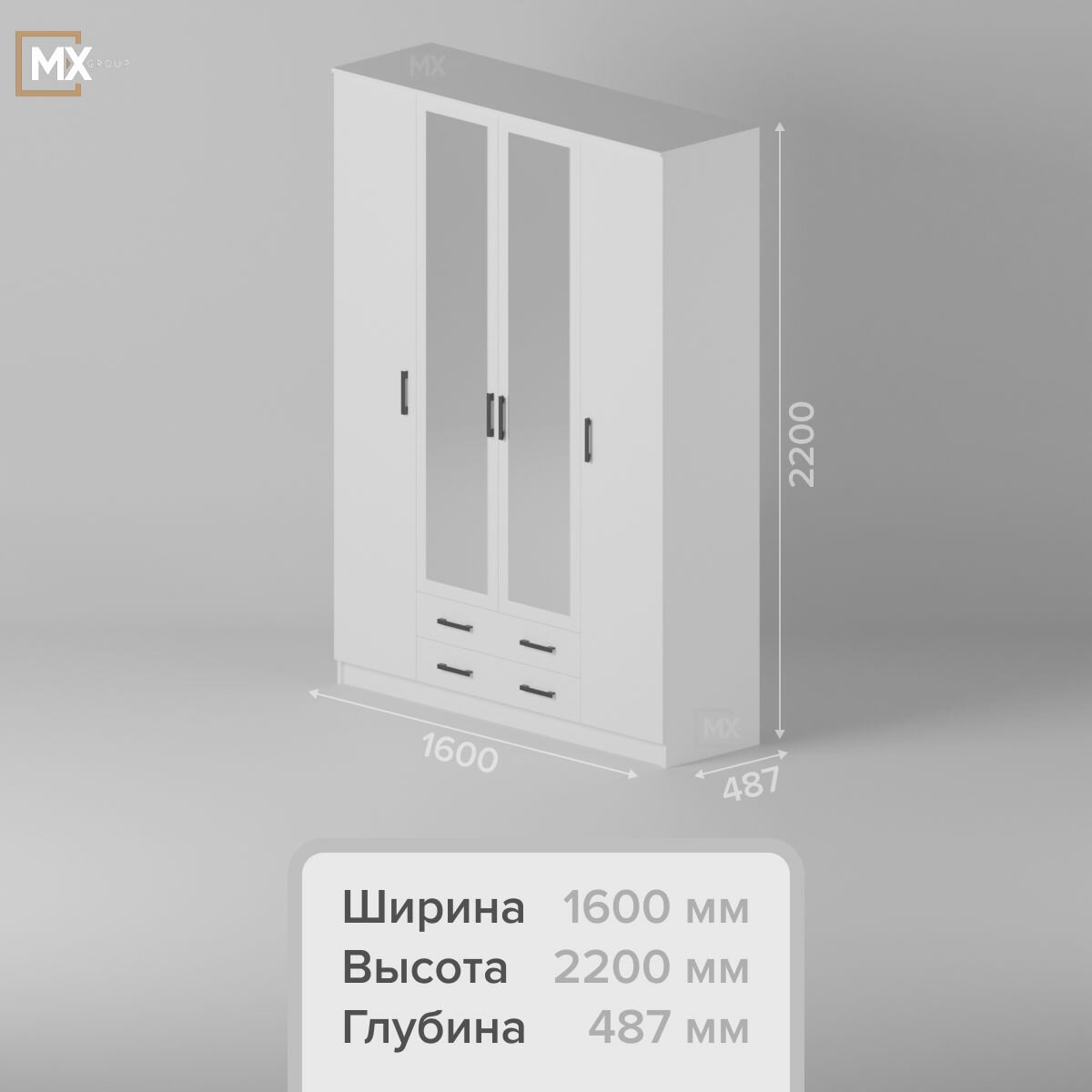 Шкаф распашной Квадро Белый гладкий ЛДСП, с полками, ящиками, штангой, зеркалом, для спальни, гостиной 1600х2200х487 ЭРА информация: