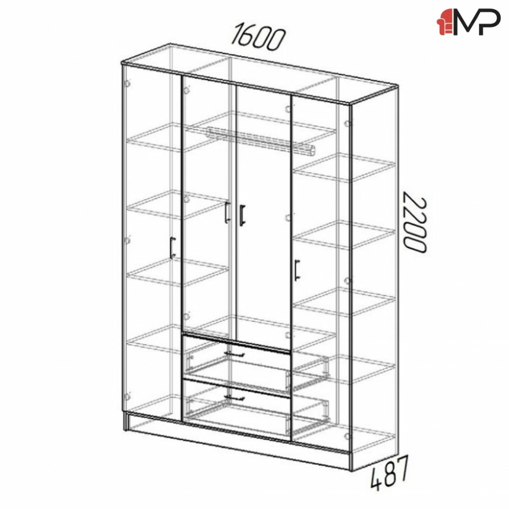 Шкаф 4-х створчатый квадро ЛДСП дуб вотан/белый гладкий (1600/2200/487 мм) для дома, дачи, офиса информация: