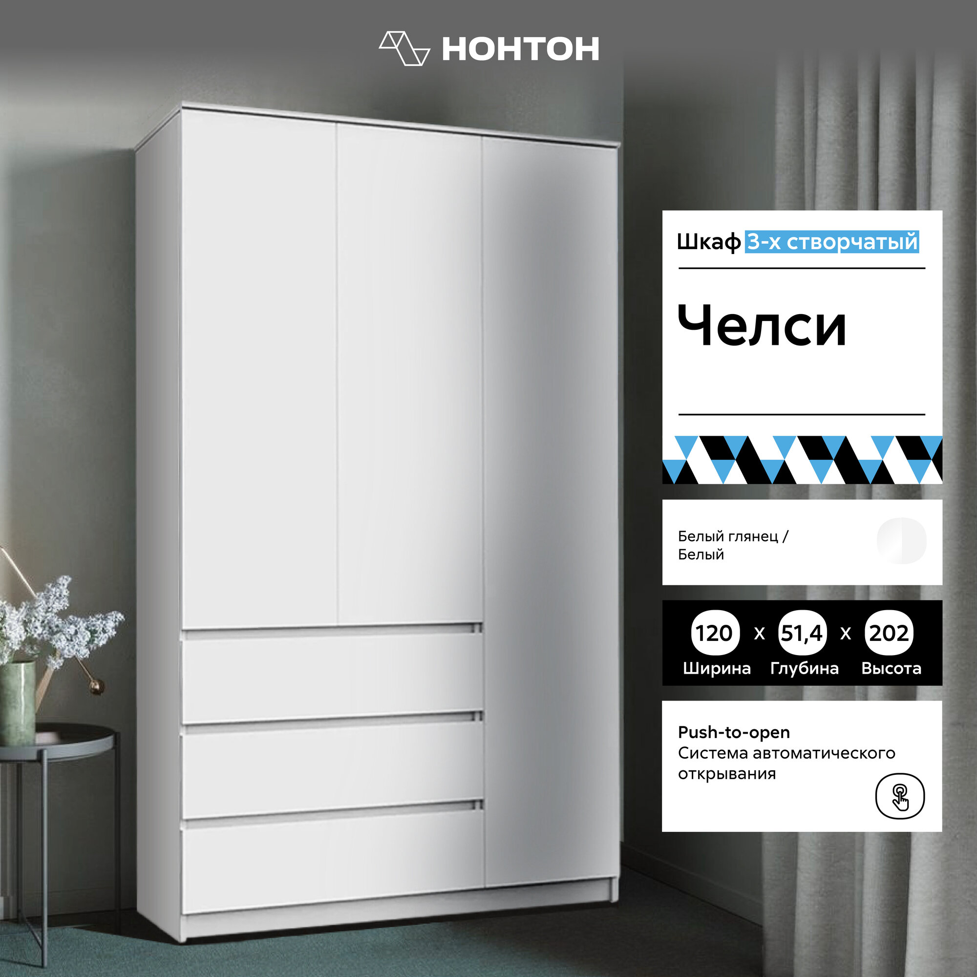 10 цен на Шкаф для одежды распашной с ящиками Нонтон Челси, белый / белый глянец, 120 см