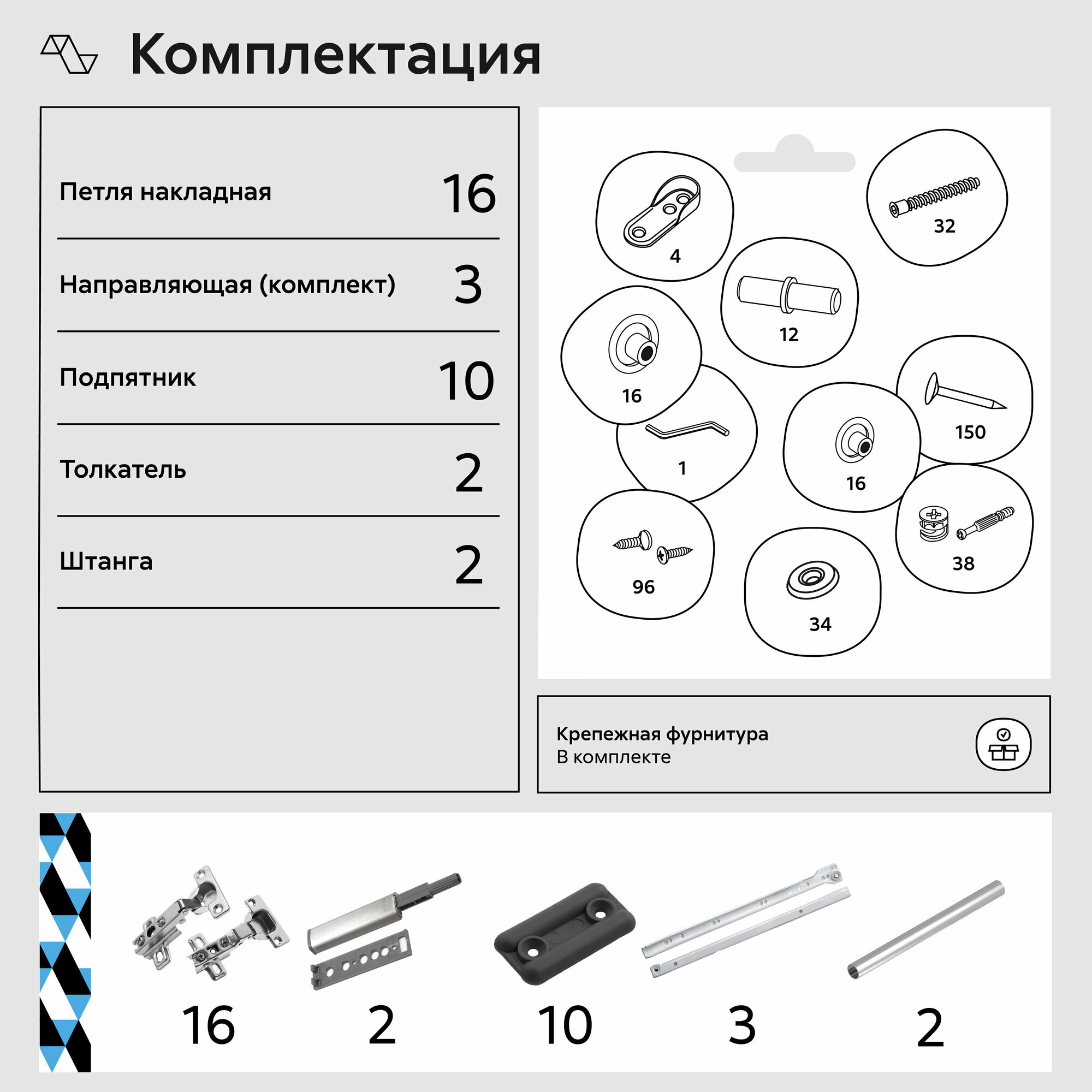 | Комплектация | Челси Шкаф 1200 (Ш) (Белый глянец холодный, белый) 120х211.6х51.4 см. Фурнитура, схема сборки |