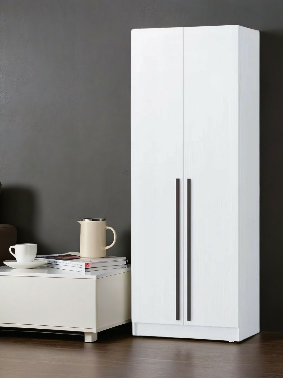 Шкаф Локер "Push to Move" Левый, 81х52.5х220, Мебельная компания Е1, Белый снег
