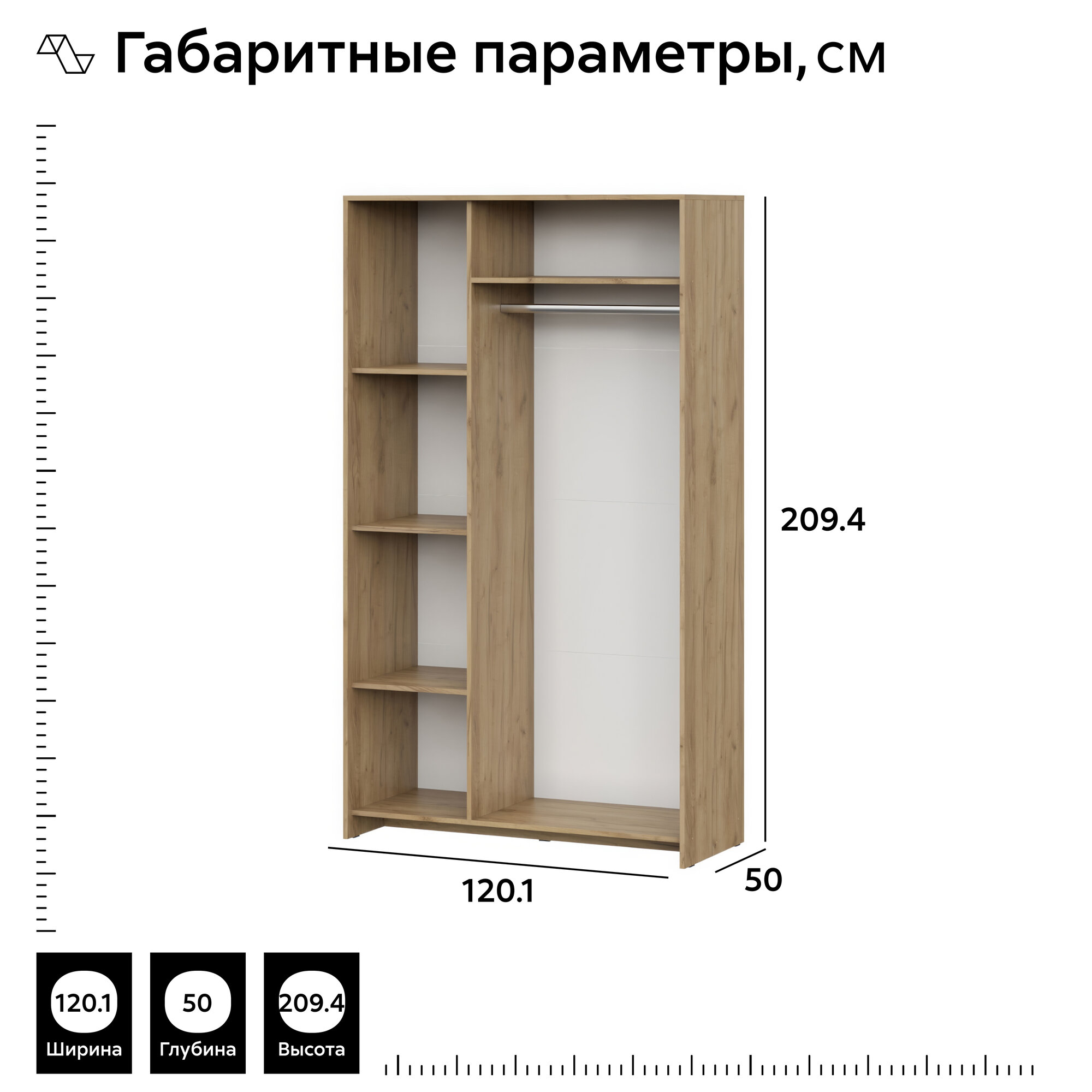 10 цен на Шкаф для одежды с зеркалом Нонтон Глория, дуб золотой / камень тёмный, 120 см
