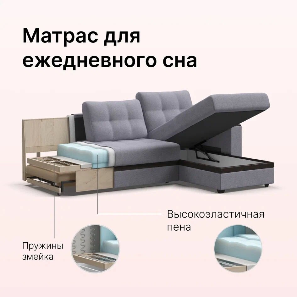 Отзывы на Угловой диван-кровать Атланта Люкс, с ящиком для хранения, механизм дельфин, рогожка Malmo платина, 255х160х86 см, Много Мебели