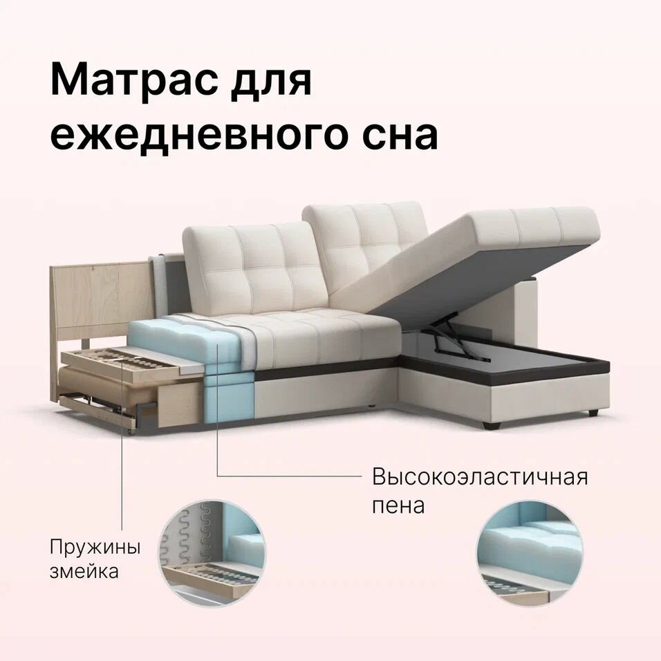 Отзывы на Угловой диван-кровать Атланта Люкс, с ящиком для хранения, механизм дельфин, экокожа белая, 250х160х86 см