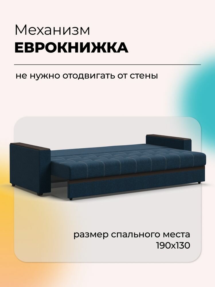 Диван-кровать с ящиком для хранения Атланта Люкс SE, еврокнижка, рогожка Malmo синий, 223х98х87 см информация:
