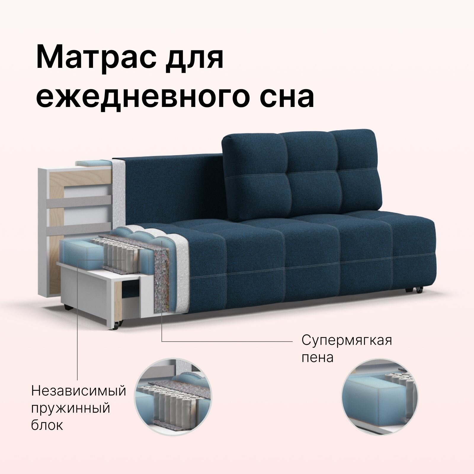10 цен на Диван-кровать с ящиком для хранения Dandy MINI SE, еврокнижка, рогожка Malmo синий, 200х100х92 см