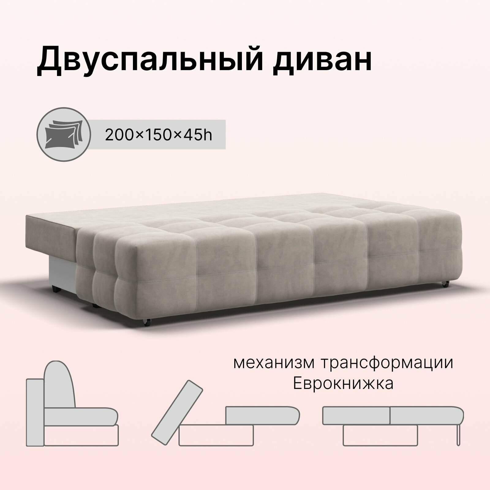 | Особенности | без подлокотников, раскладная конструкция, съемные подушки, ящик для белья |