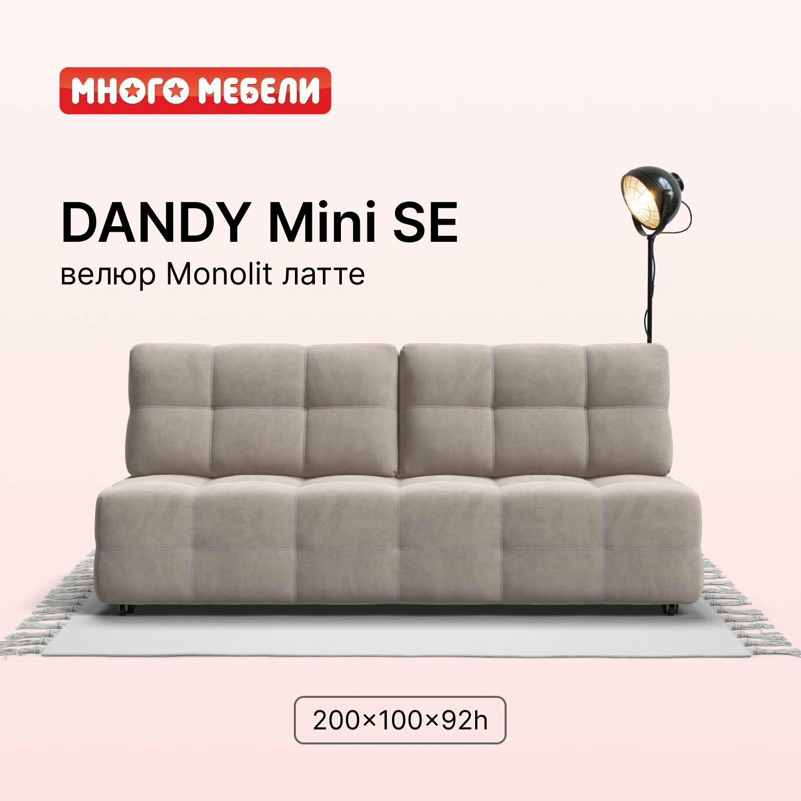 Прямой диван-кровать с ящиком для хранения Dandy MINI SE велюр Monolit латте, 200x100x92 см 28 709 ₽