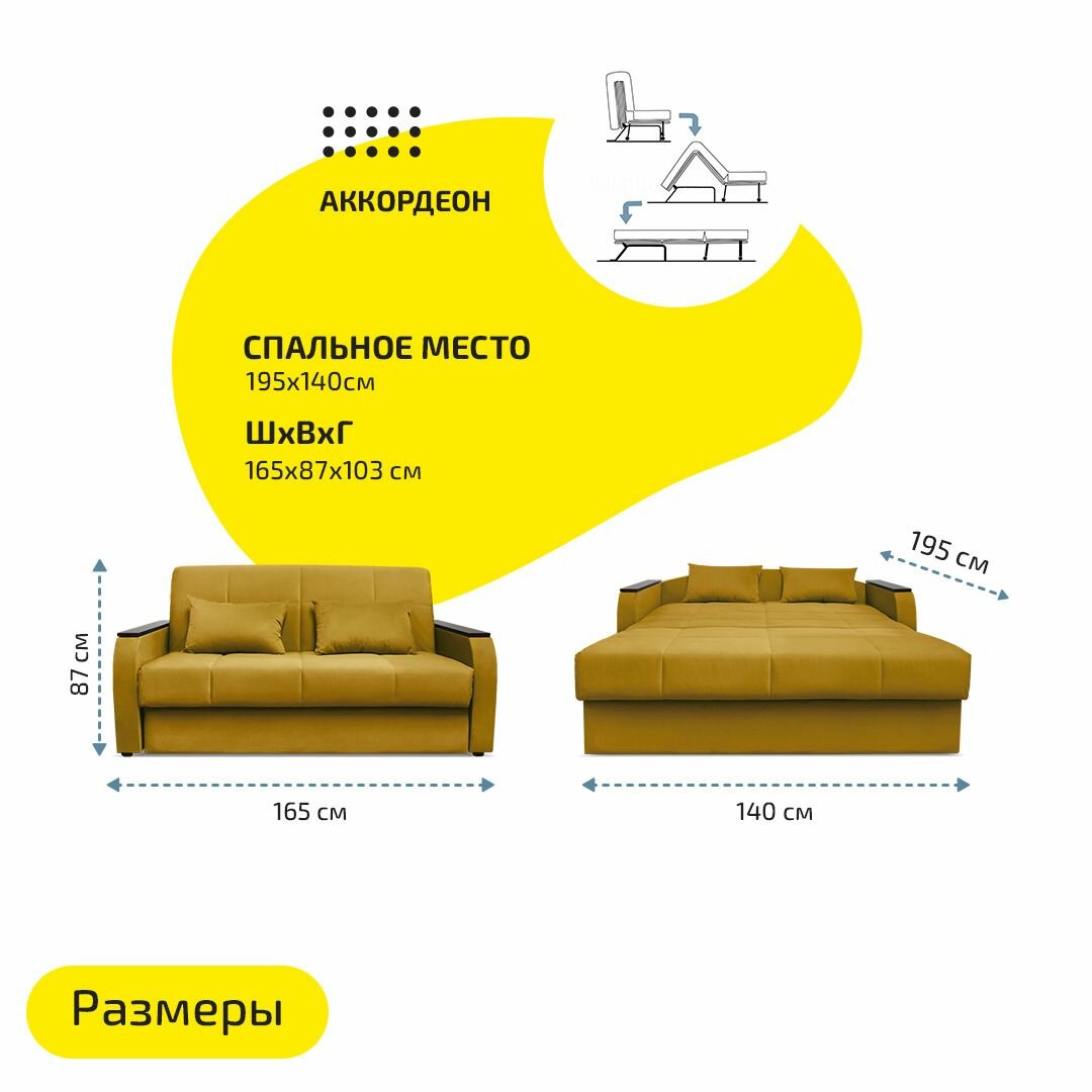 Диван-кровать Ah! Divan Креско М 165х103х87 см со съемным чехлом, механизм аккордеон, горчичный, велюр информация: