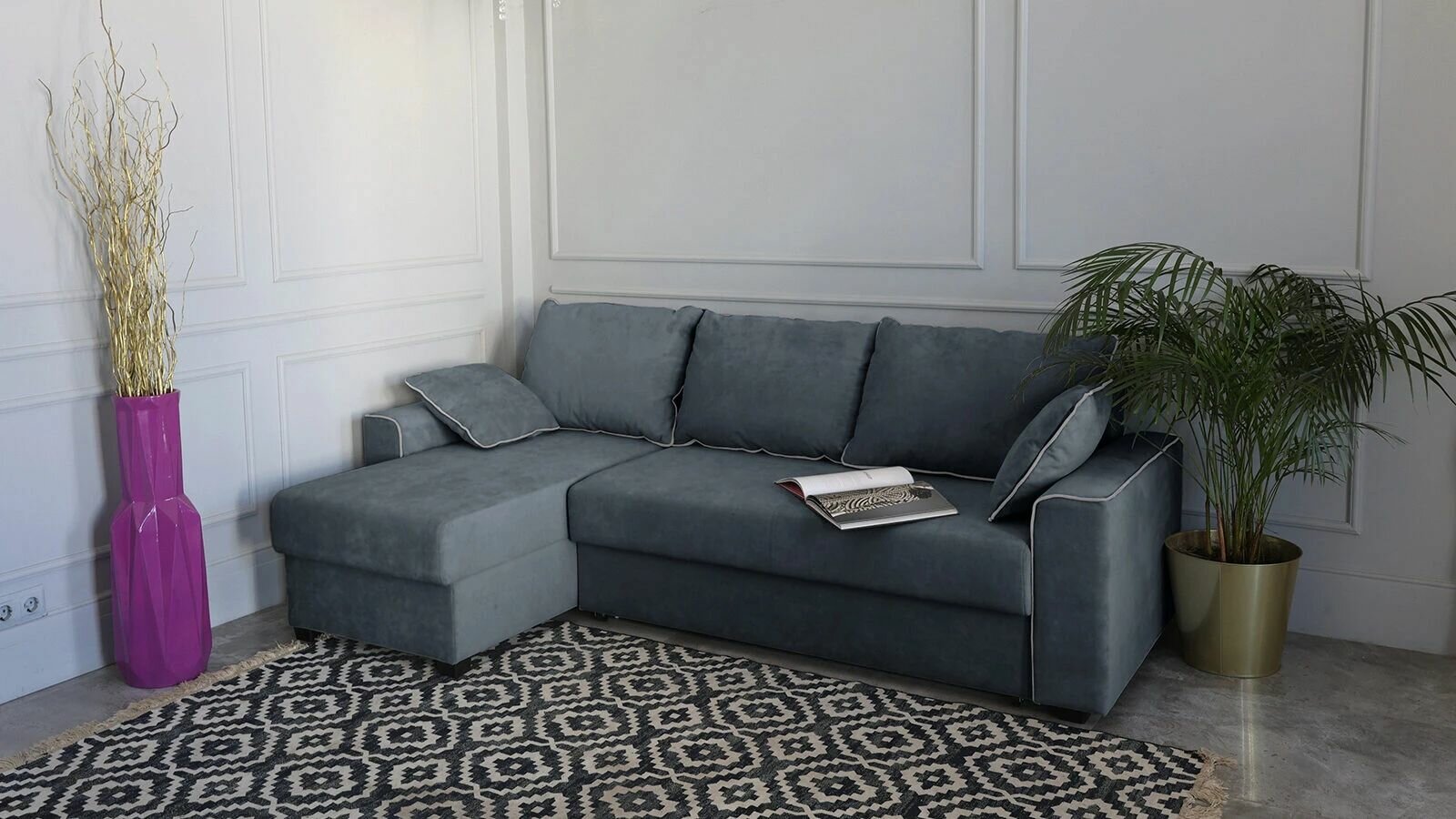 Диван угловой Атланта М левый угол, велюр серый, вставка велюр черный