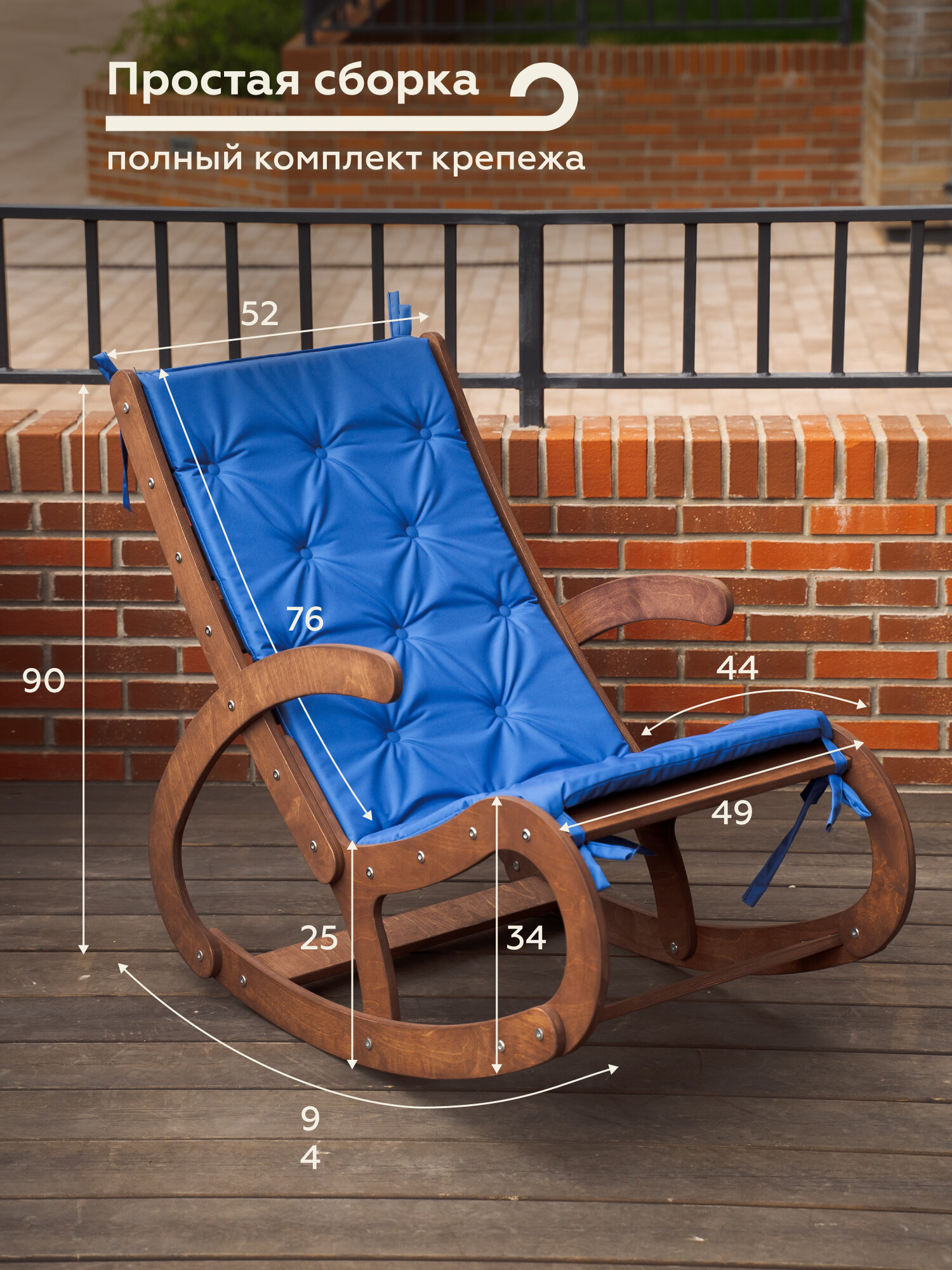 Кресло качалка взрослое для сада и дачи венге с синей подушкой 13 102 ₽