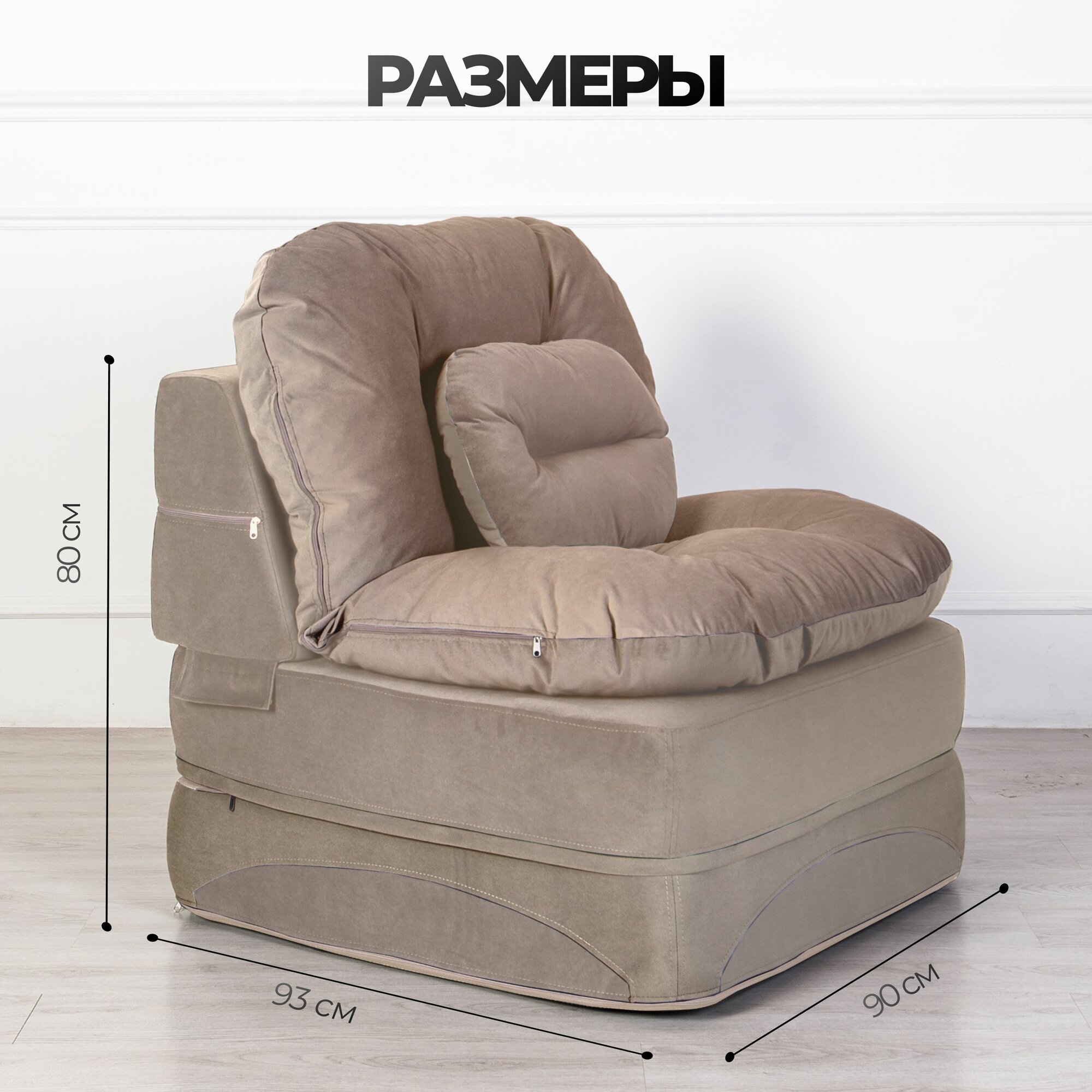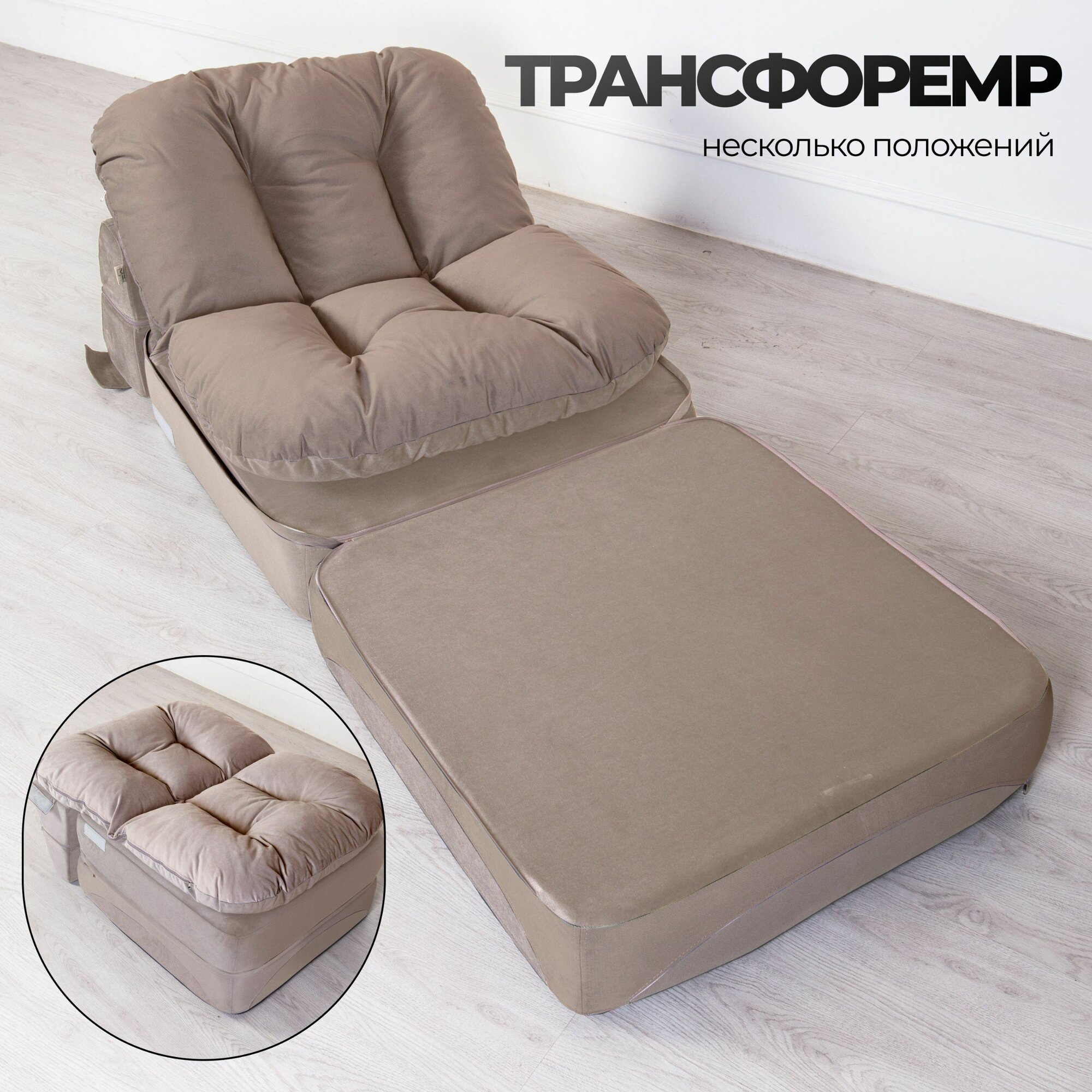 Кресло кровать бескаркасное раскладное 90*95 см с матрасом Клиффорд, спальное место 230*90 см, коричневое информация: