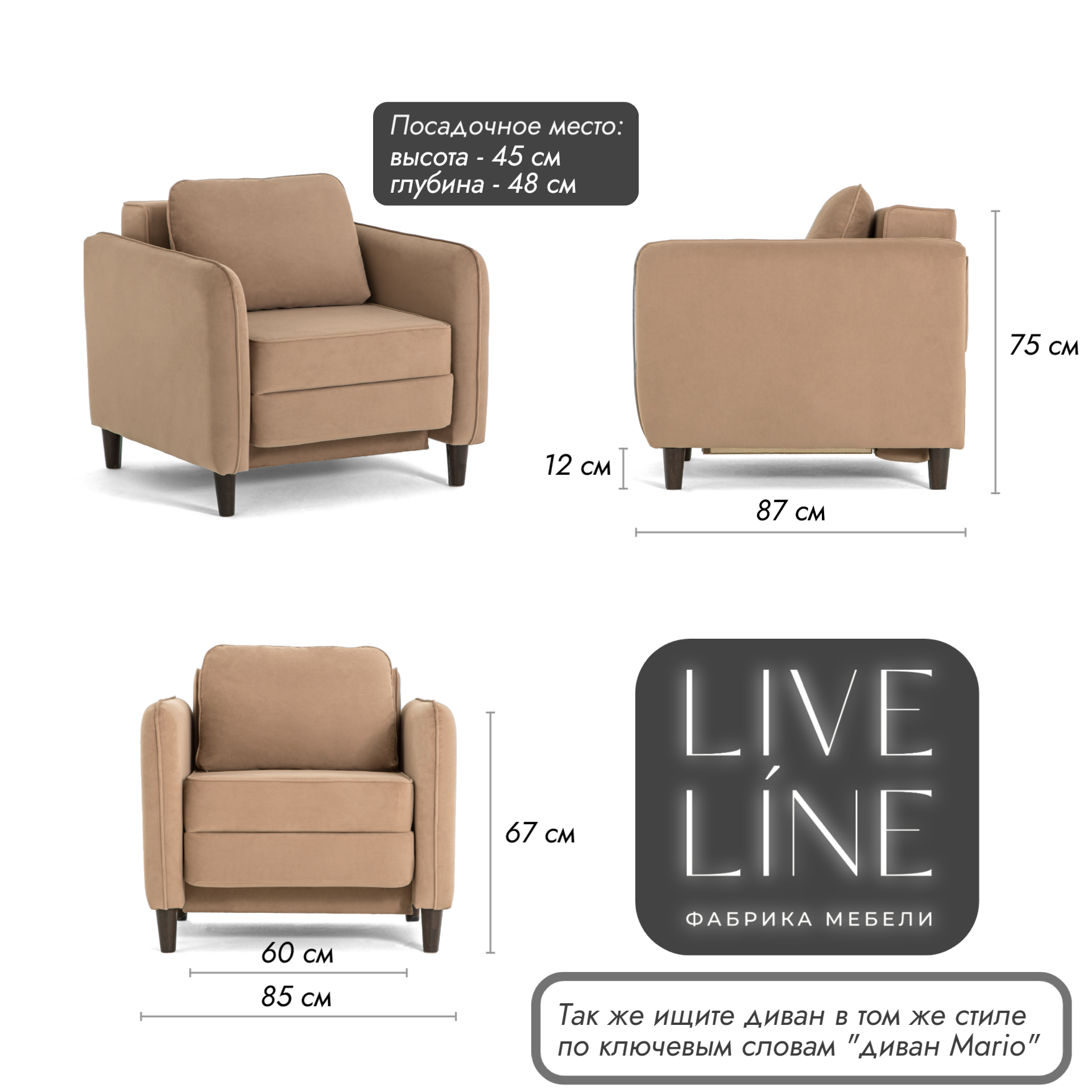 Отзывы на Кресло-кровать Live Line"Mario" 85х87см бежевый велюр, на ножках