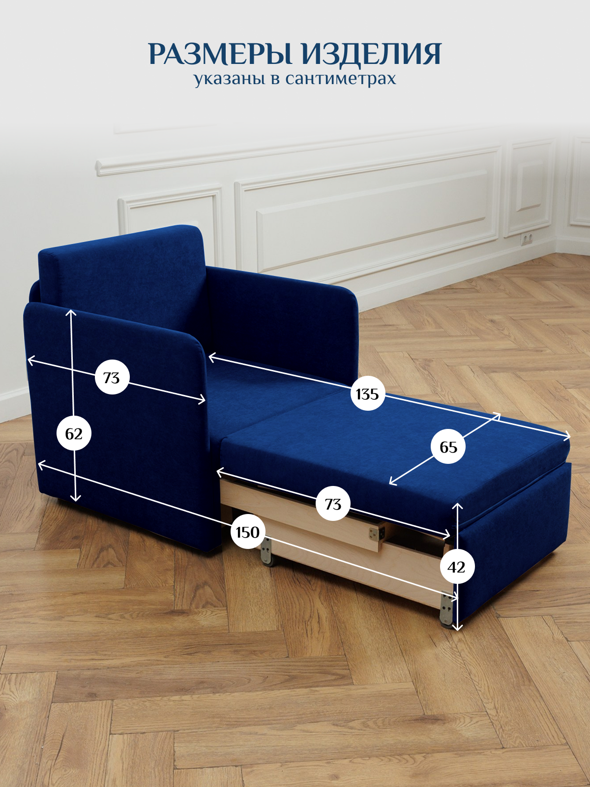 Отзывы на Кресло-кровать на балкон Кресло Brendoss 506 раскладное, с подлокотниками, материал износостойкий велюр, цвет синий