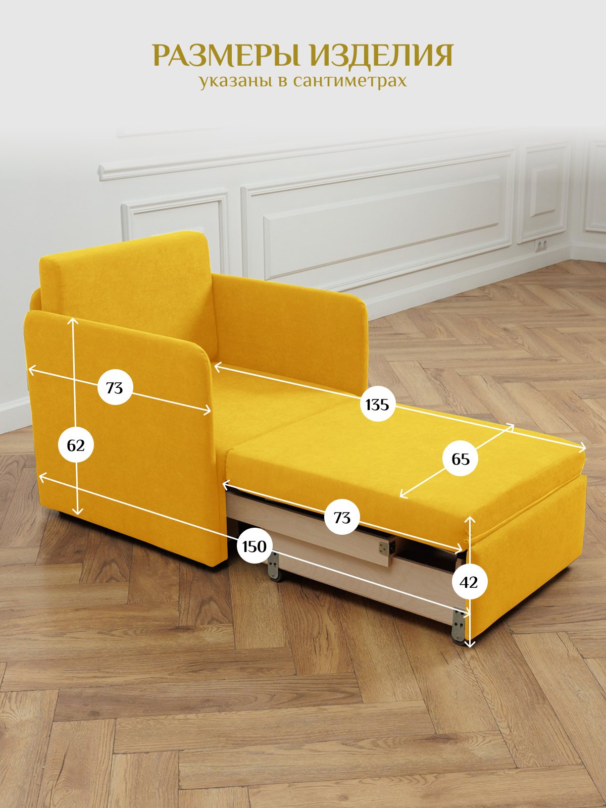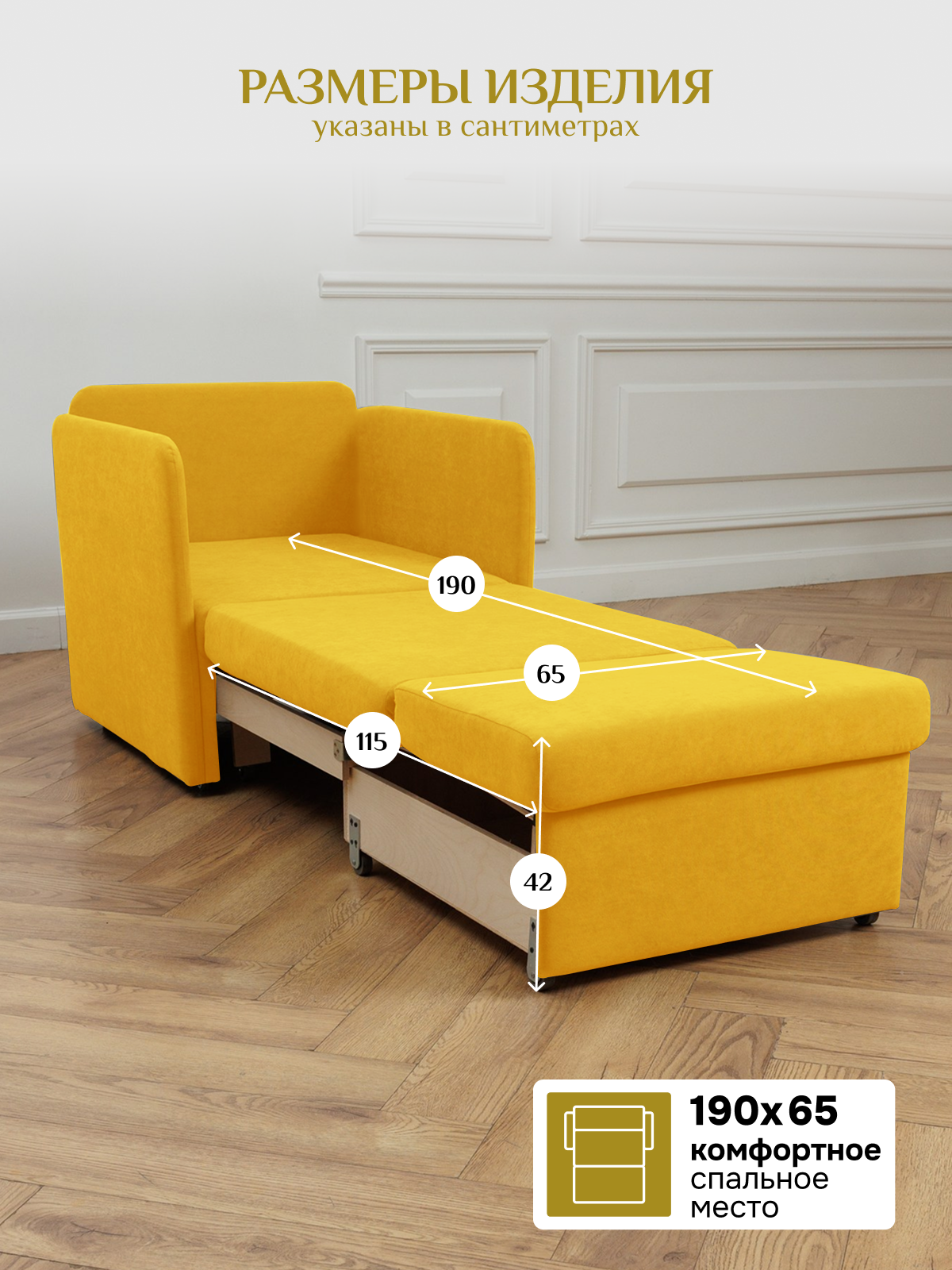 Отзывы на Кресло-кровать на балкон Кресло Brendoss 506 раскладное, с подлокотниками, материал износостойкий велюр, цвет желтый