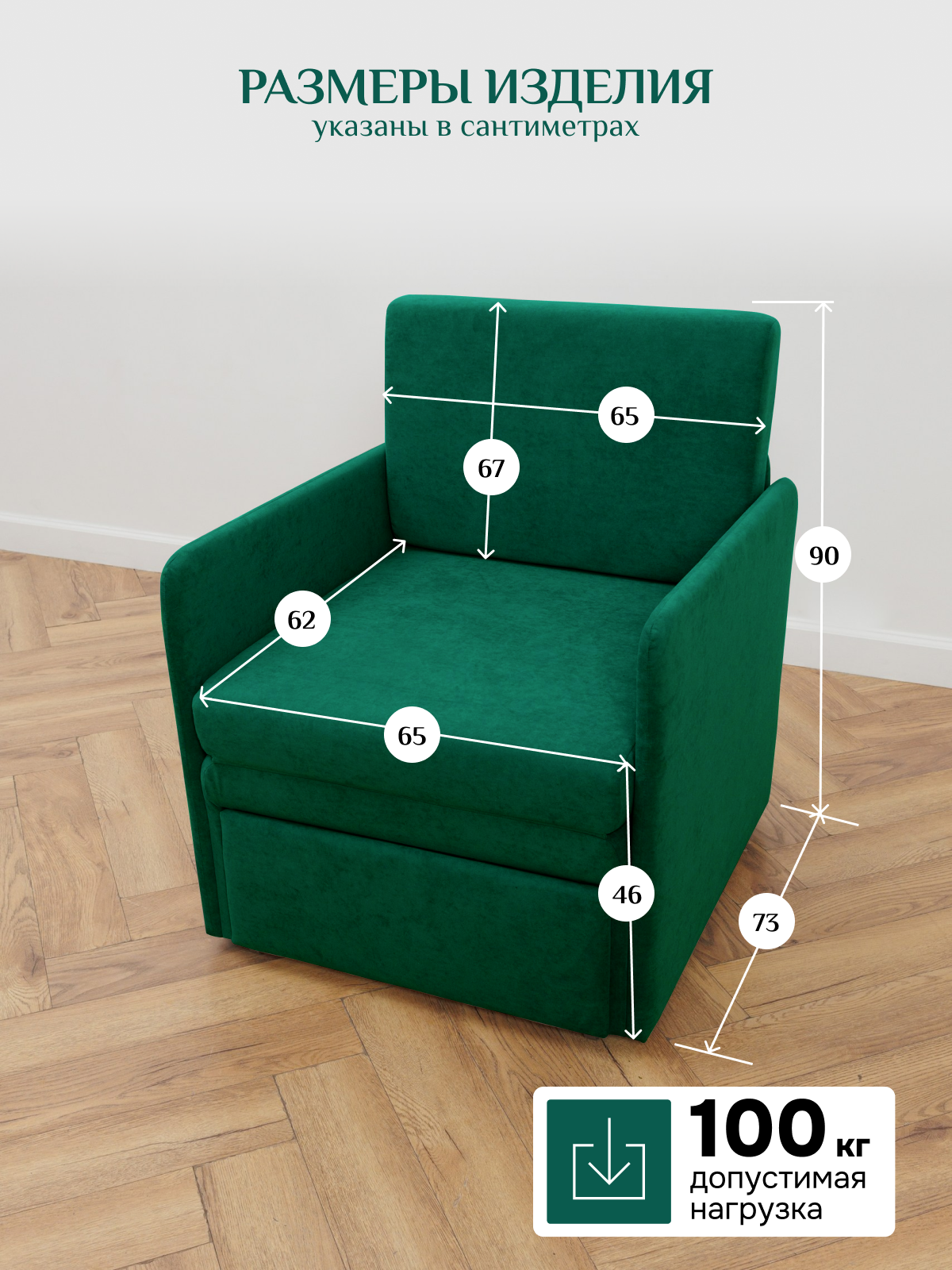 Отзывы на Кресло-кровать на балкон Кресло Brendoss 506 раскладное, с подлокотниками, материал износостойкий велюр, цвет изумрудный