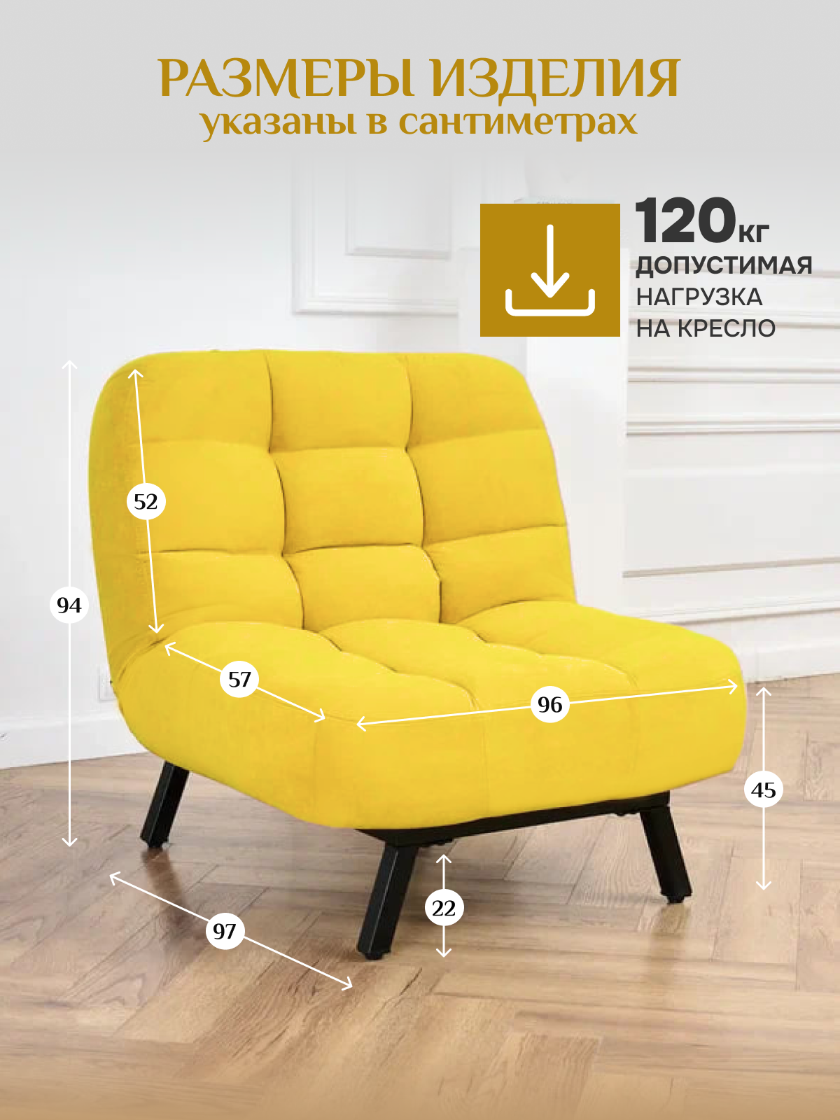 Кресло Brendoss 306 раскладное с регулируемой спинкой, механизм клик-кляк, материал износостойкий велюр, цвет желтый информация: