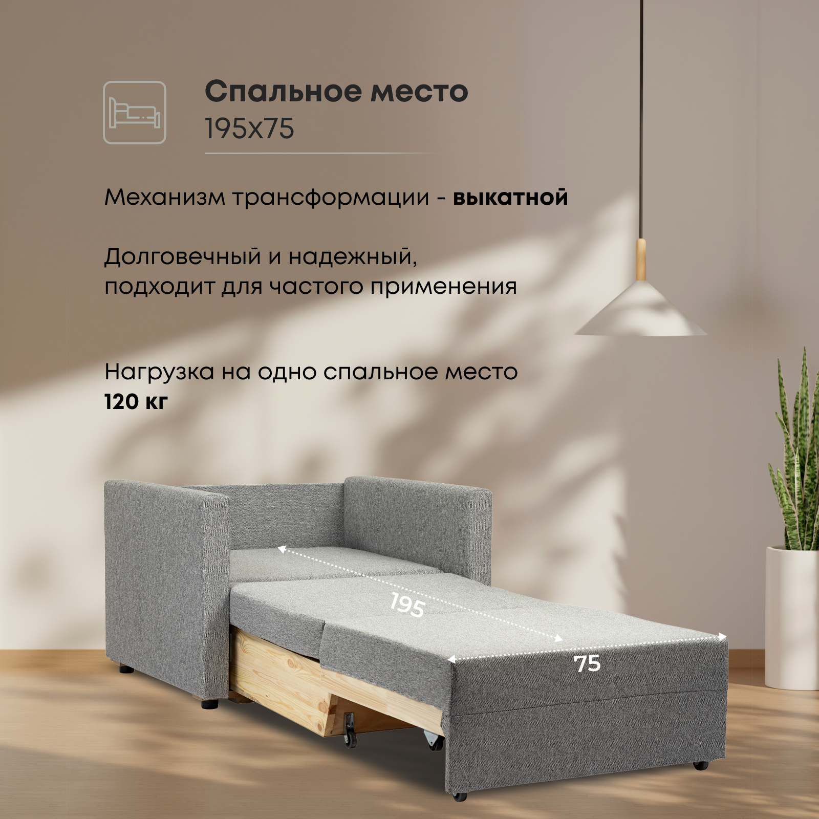 Кресло-кровать Виктория, раскладное, выкатной механизм, рогожка, светло-серый, в гостиную, в спальню, спальное место, кровать, Divan24 информация: