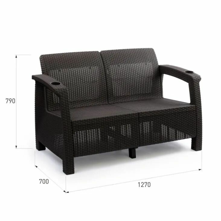 Диван садовый, 2-х местный, 127х70х79 см, мокко (с коричневыми подушками) информация: