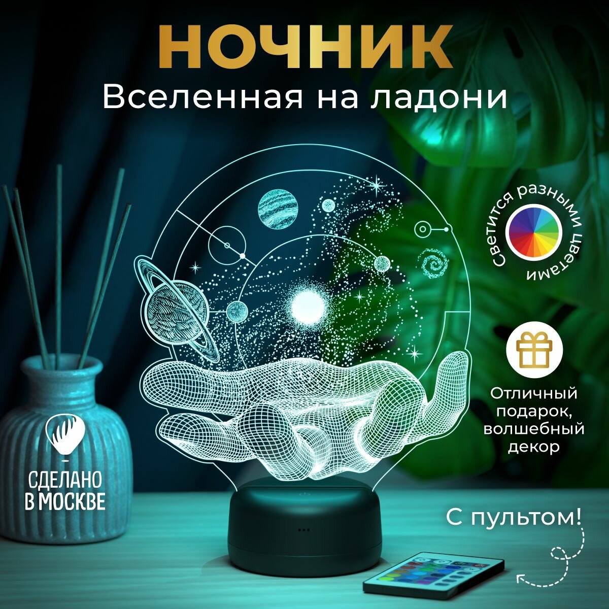 10 цен на 3D светильник ночник "Вселенная на ладони" - подарок на 23 февраля