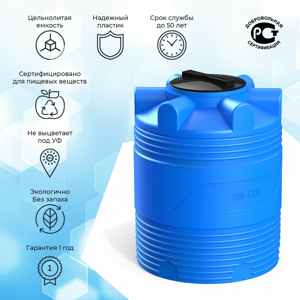 Емкость 300 литров Polimer Group V300 для воды/ топлива/ соления/ продуктов, цвет синий информация: