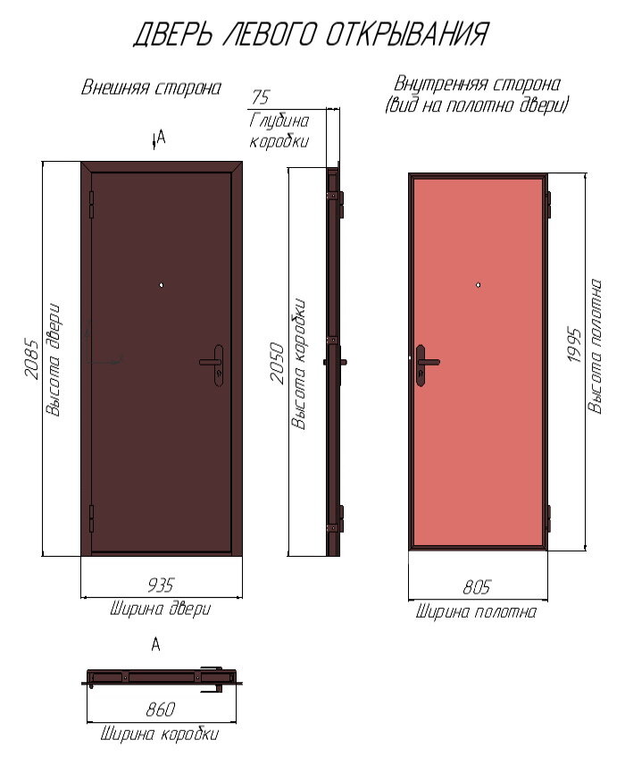 | Комплектация двери | глазок / замок / петли / противосъемные штыри |