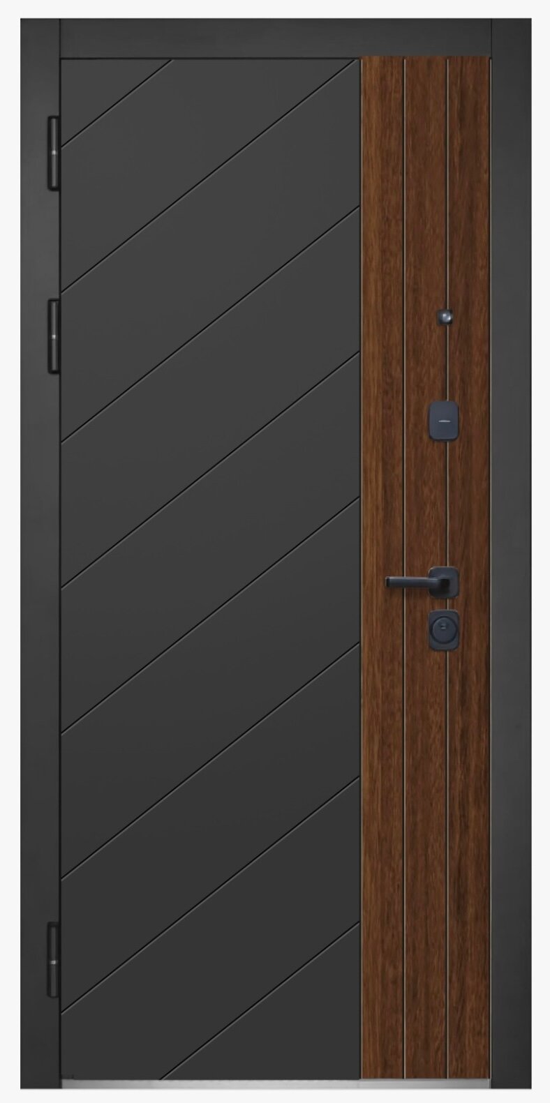 Дверь входная мегатрон WOOD 1 Ясень Дип Графит - Белый снег 860 Левая