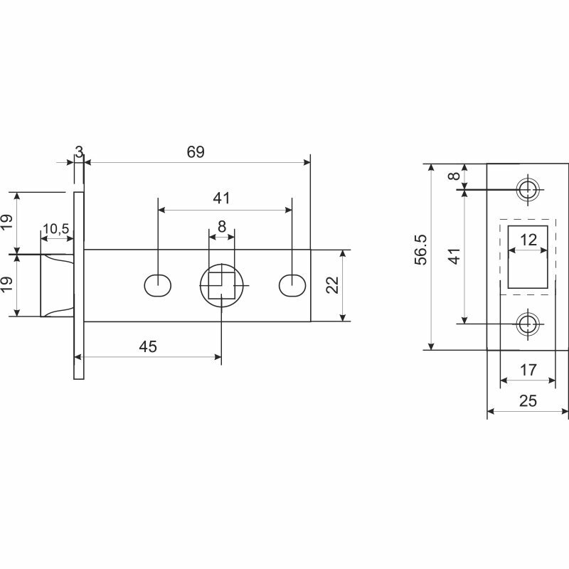 Защелка дверная врезная универсальная для деревянных межкомнатных дверей аллюр АРТ L45-8 BL (матовый черный) торцевая планка 25мм