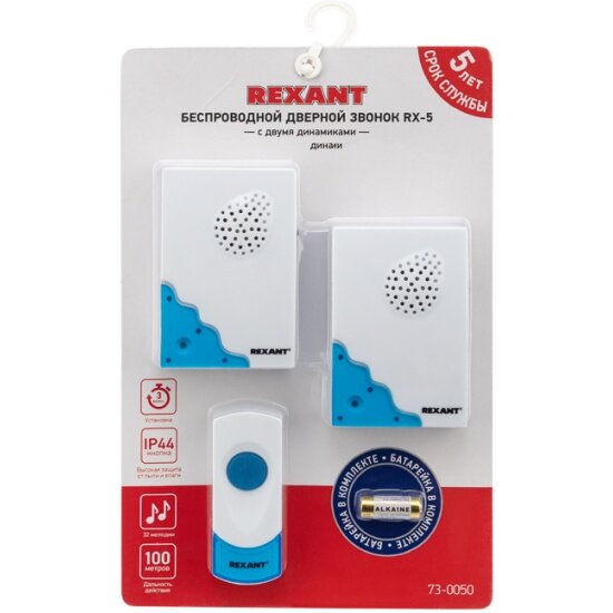 Звонок беспроводной Rexant RX-5, 2 приемника, 32 мелодий, 100 м REXANT 2582658 . 2 266 ₽